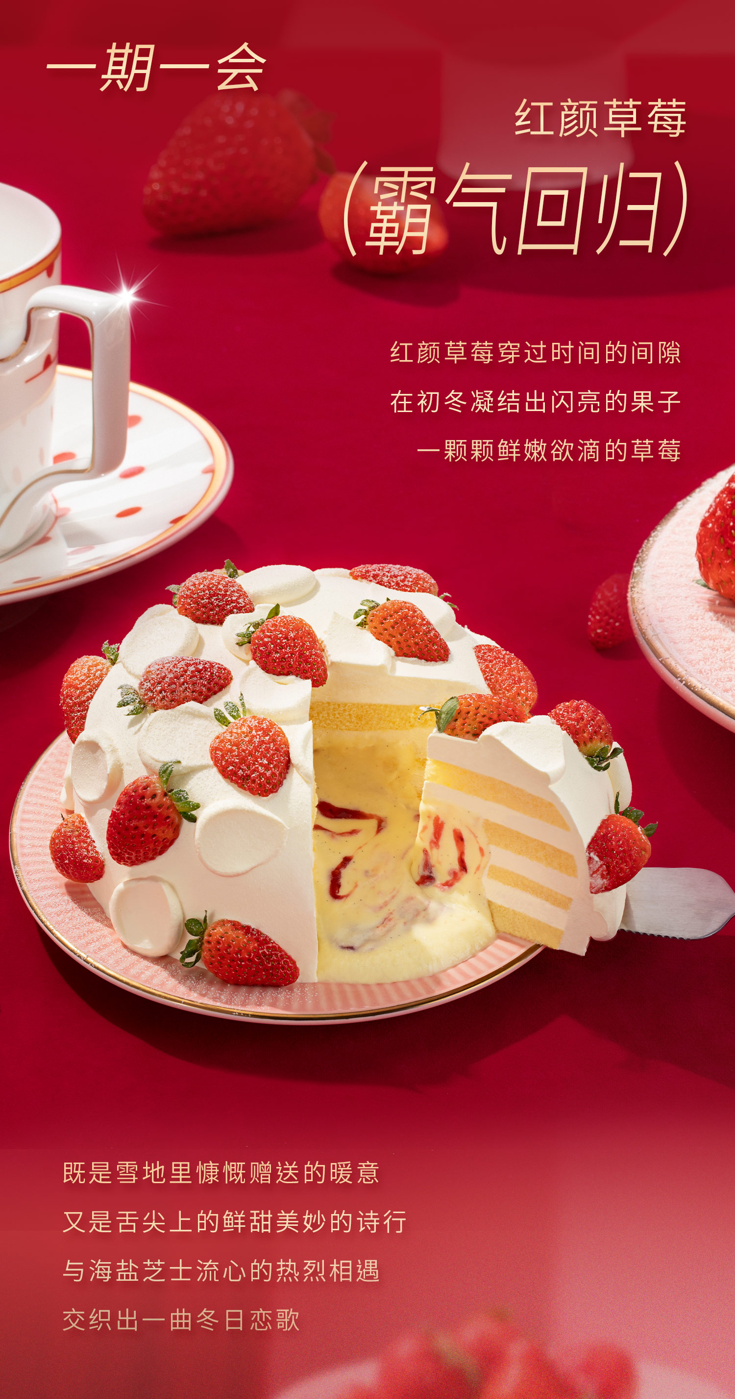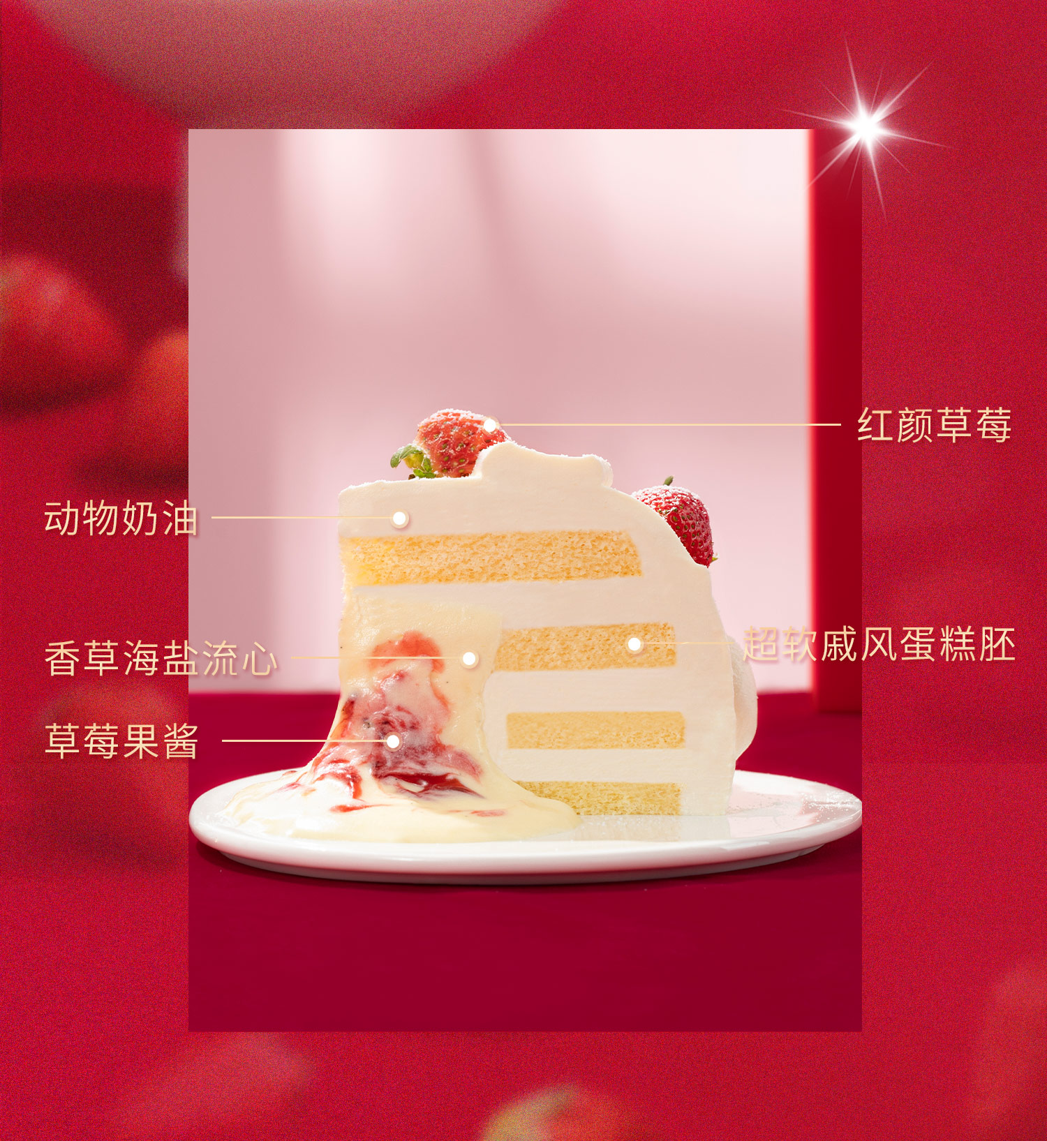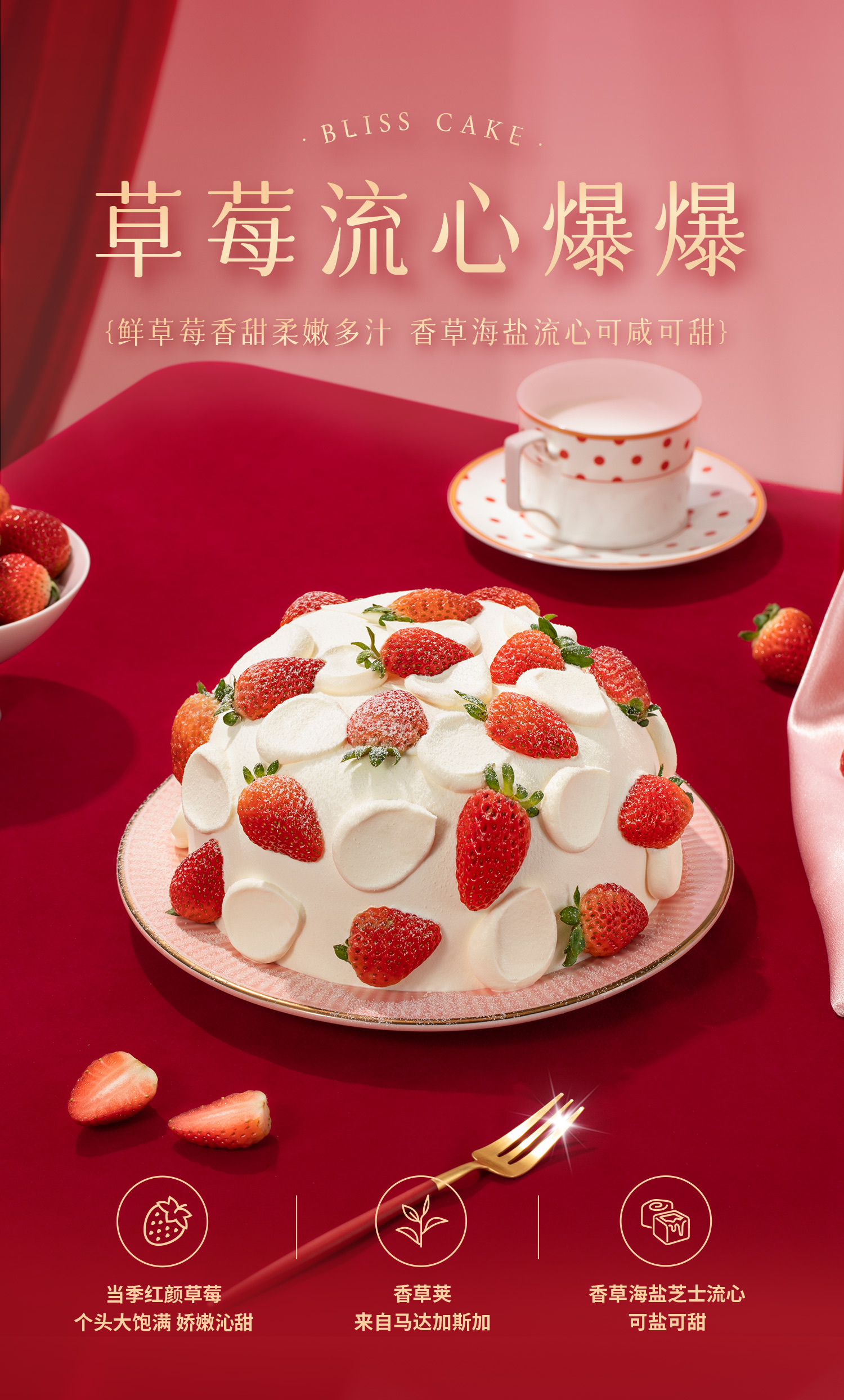 爆款回归【草莓流心爆爆】当季红颜草莓香甜柔嫩多汁,轻轻切开一抹雪白,陷入微咸海盐香草流心里,6英寸草莓下午茶