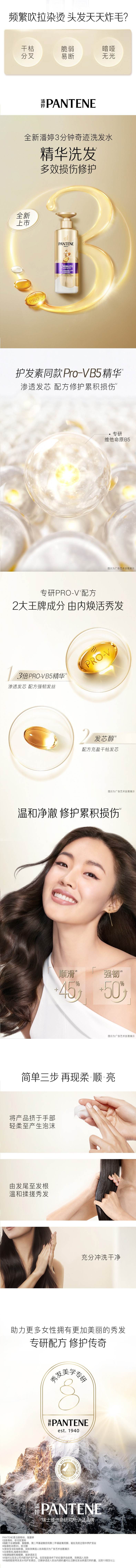 潘婷3分钟奇迹洗发水(多效损伤修护)470ml(251076)