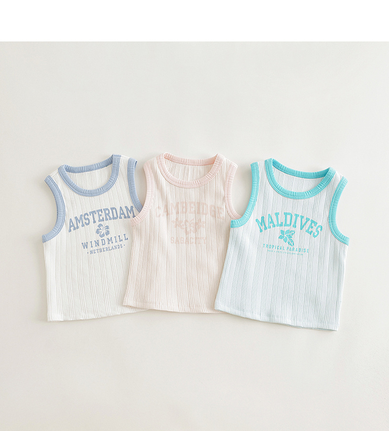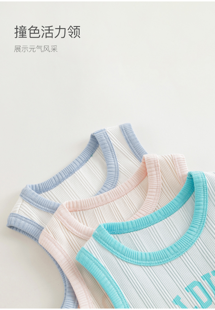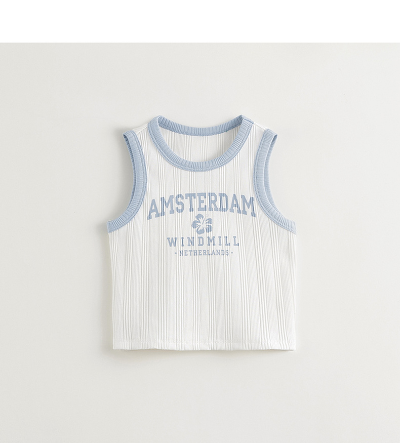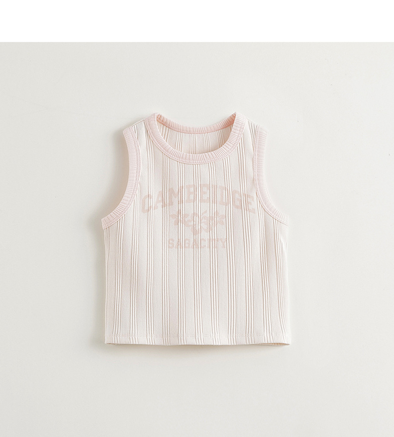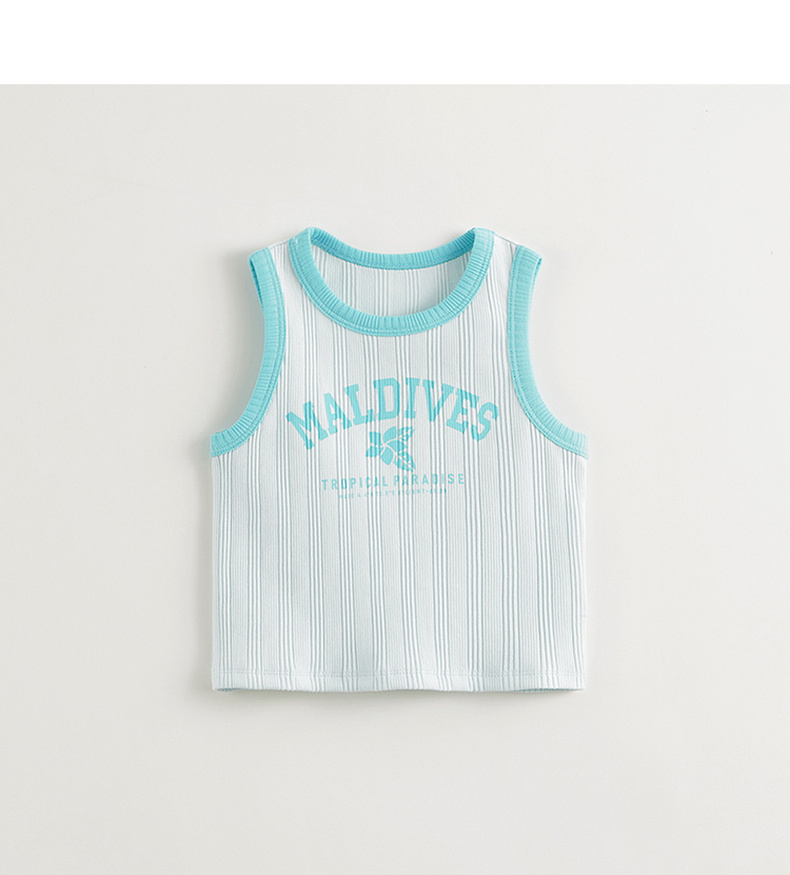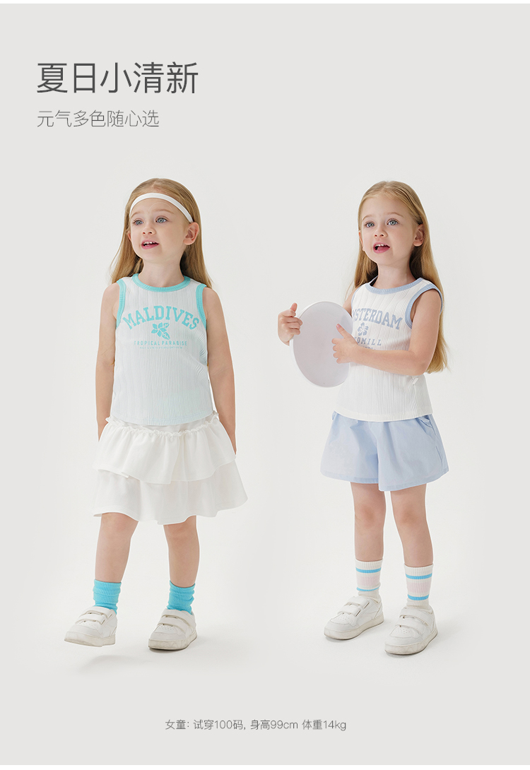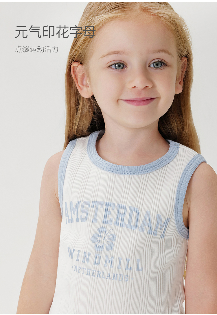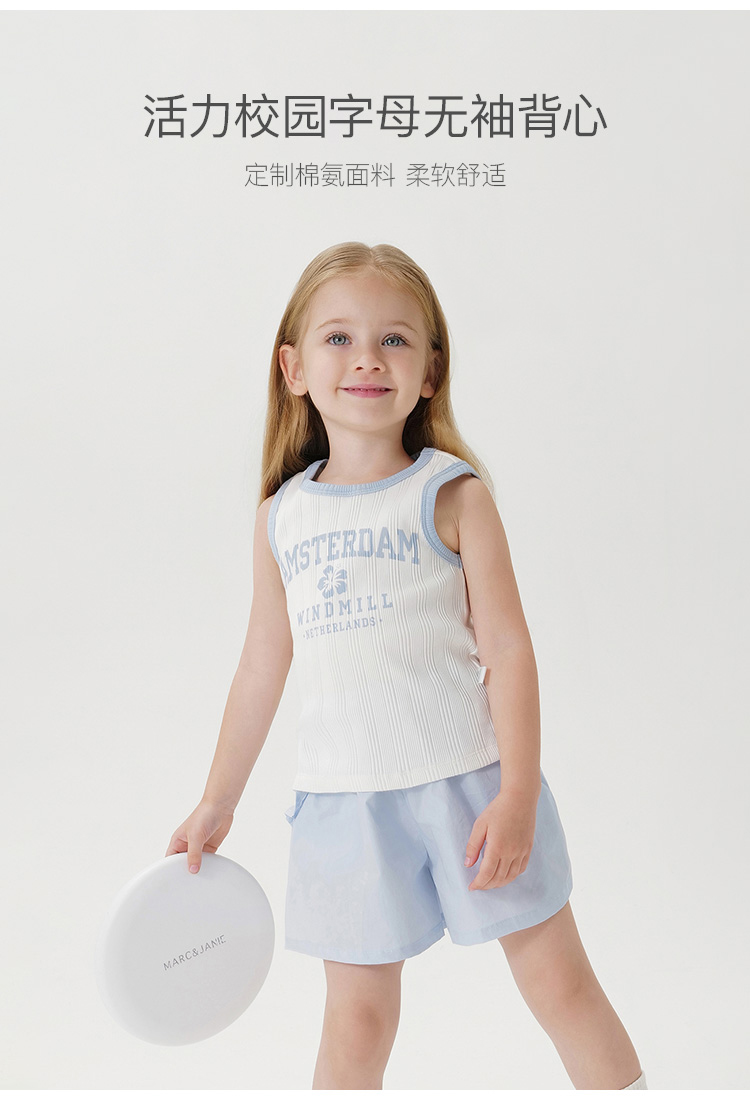 马克珍妮2024年夏装新款女童活力校园字母无袖背心T恤240928