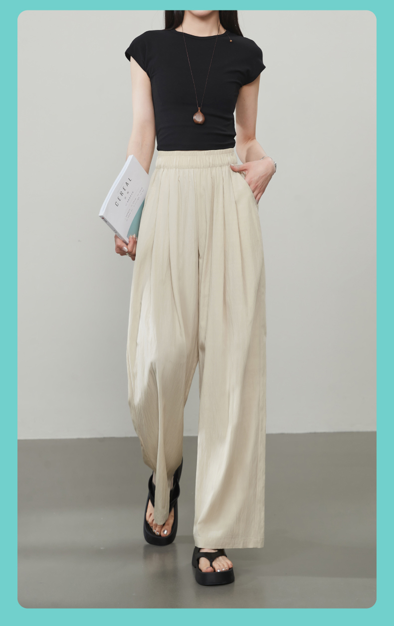 【亏本-空气感阔腿裤】逸阳夏末初秋高腰垂感宽松直筒休闲裤子1271A