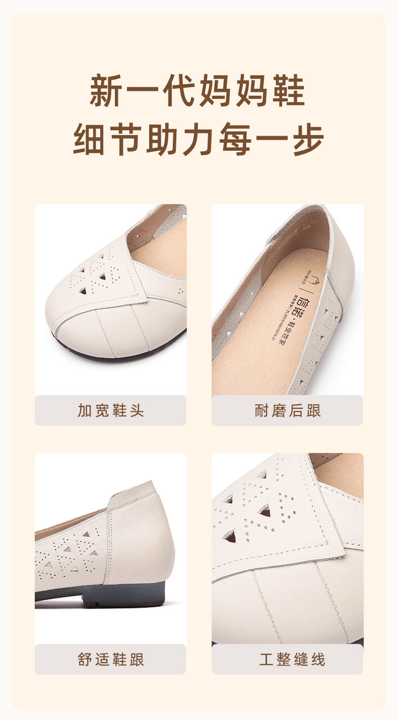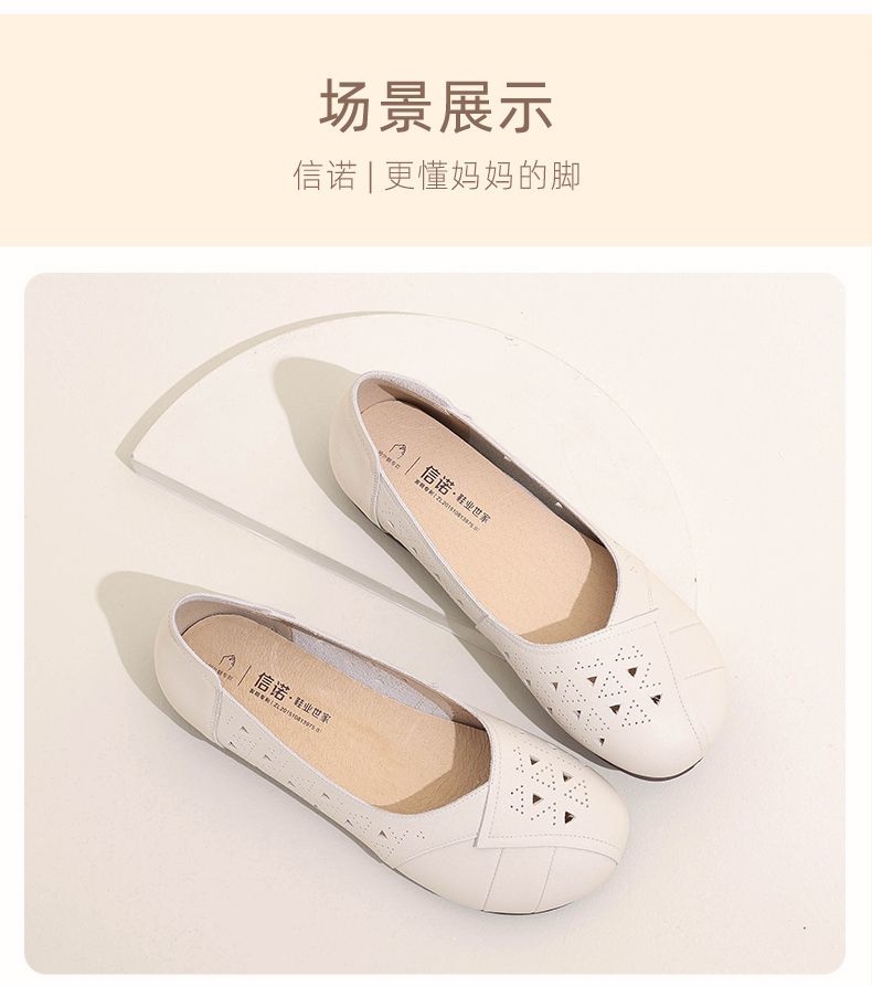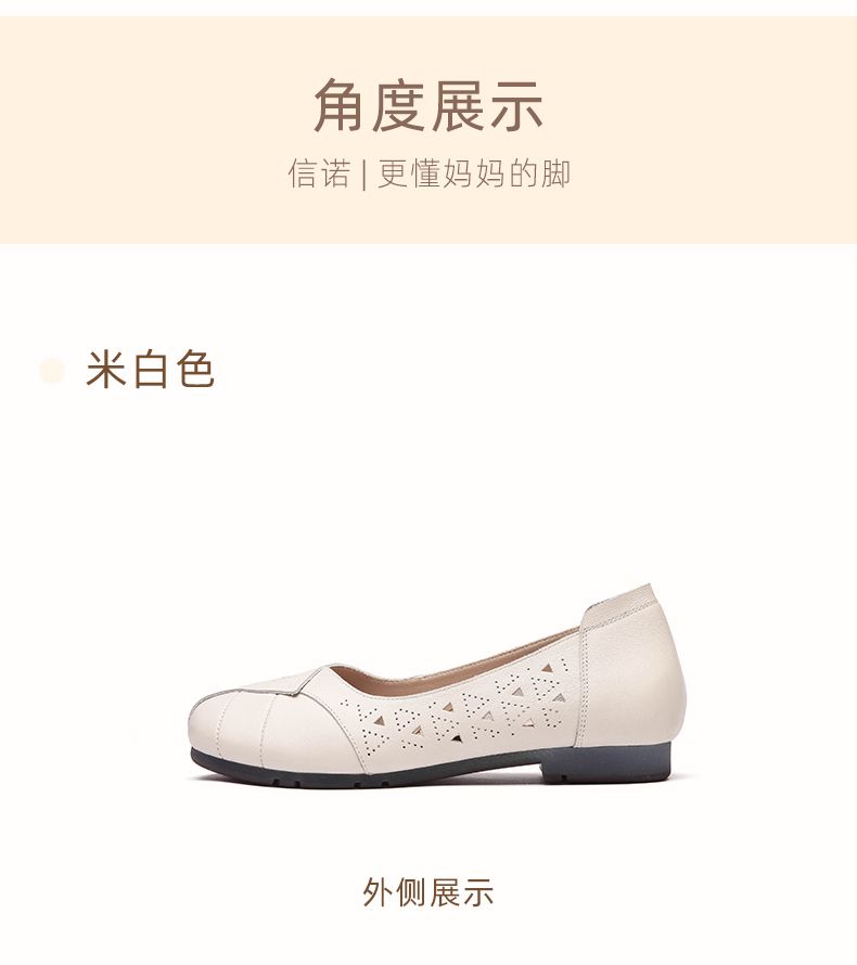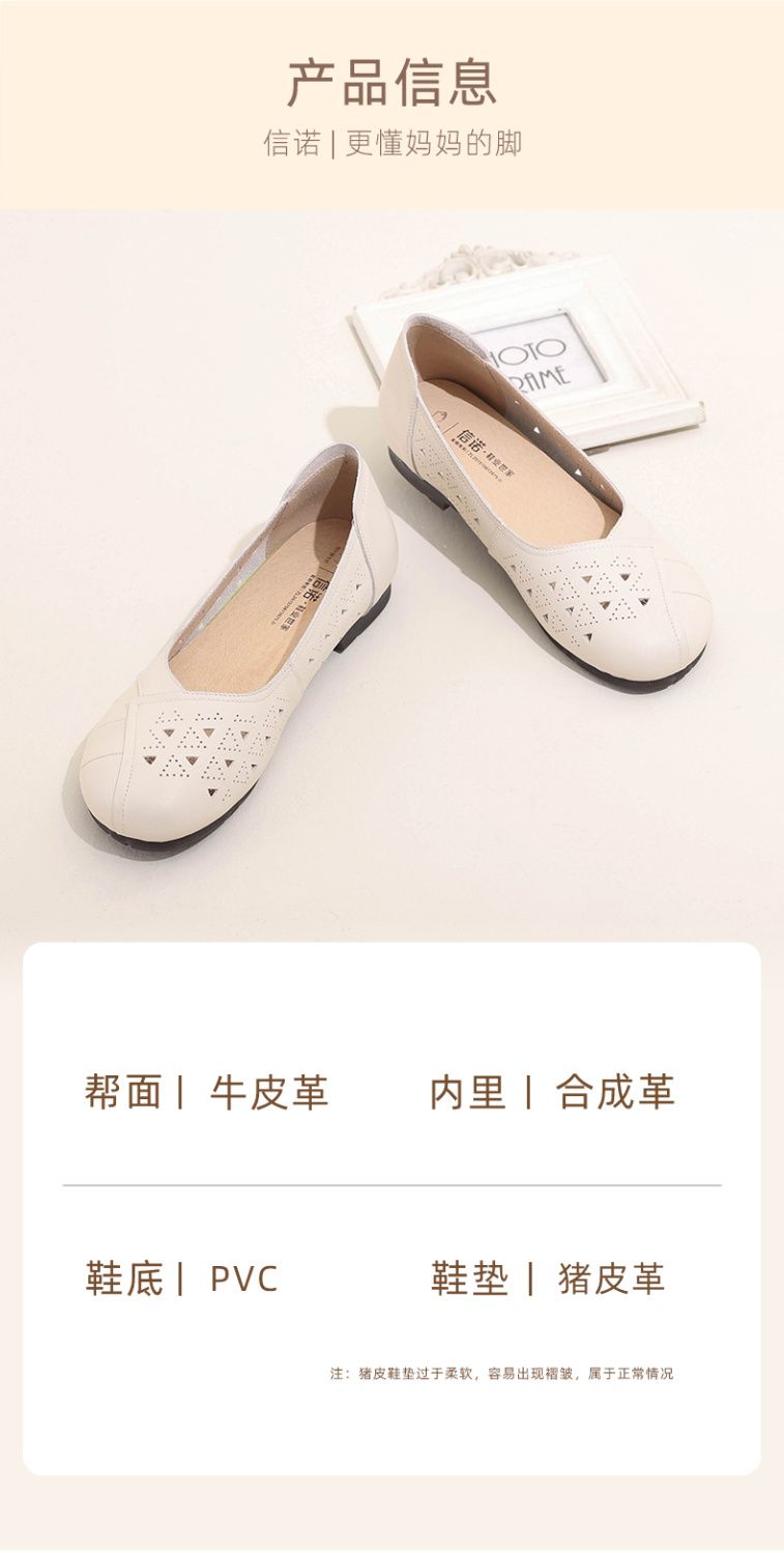 信诺 镂空透气女鞋 2024新款真皮舒适妈妈鞋软底中老年洞洞皮凉鞋24C1980-08