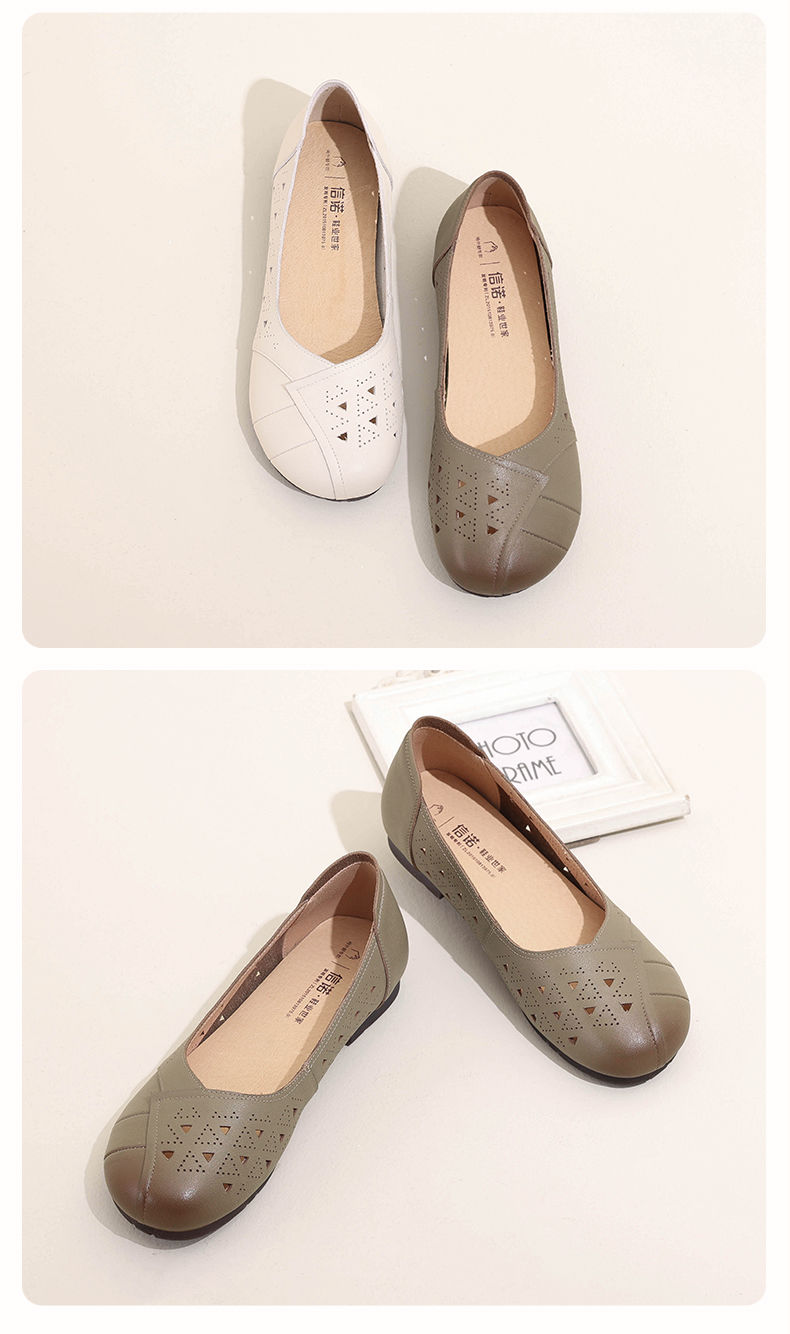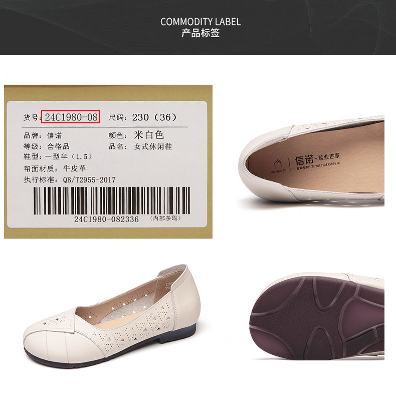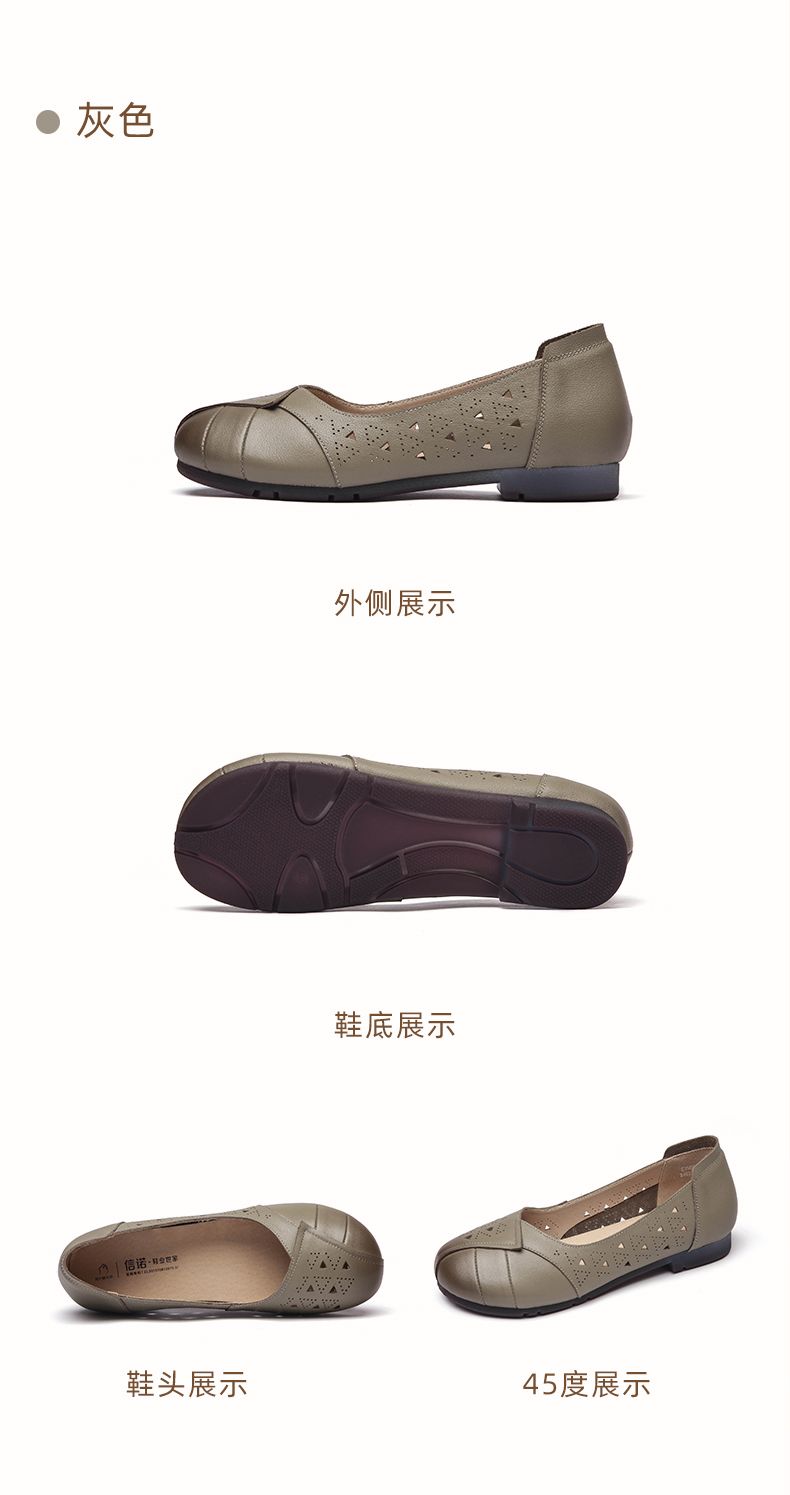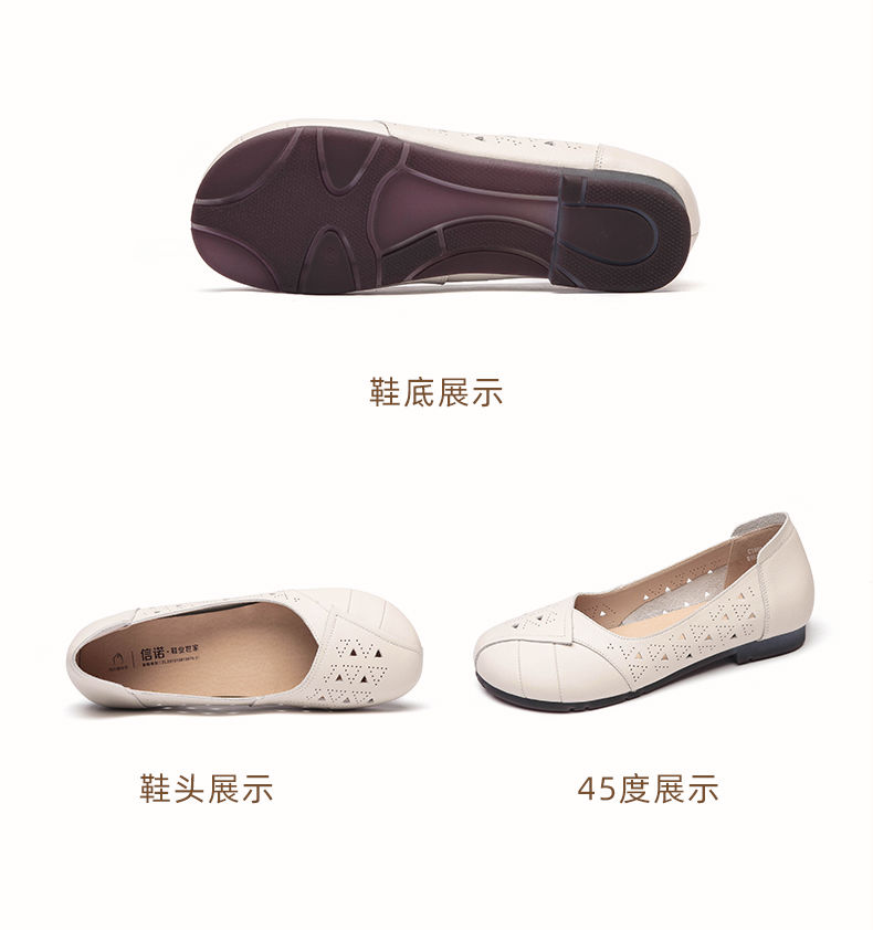 信诺 镂空透气女鞋 2024新款真皮舒适妈妈鞋软底中老年洞洞皮凉鞋24C1980-08