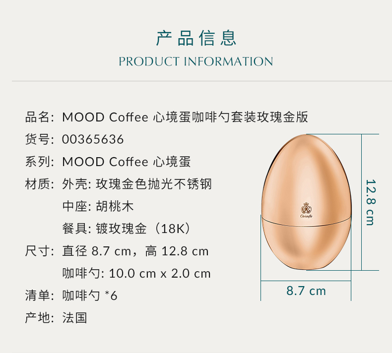 CHRISTOFLE 昆庭 MOOD Coffee 心境蛋咖啡勺套装 玫瑰金
