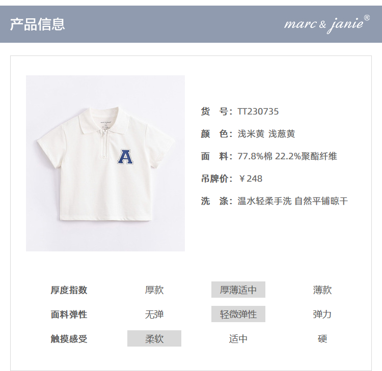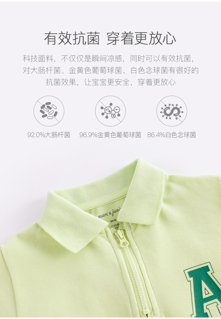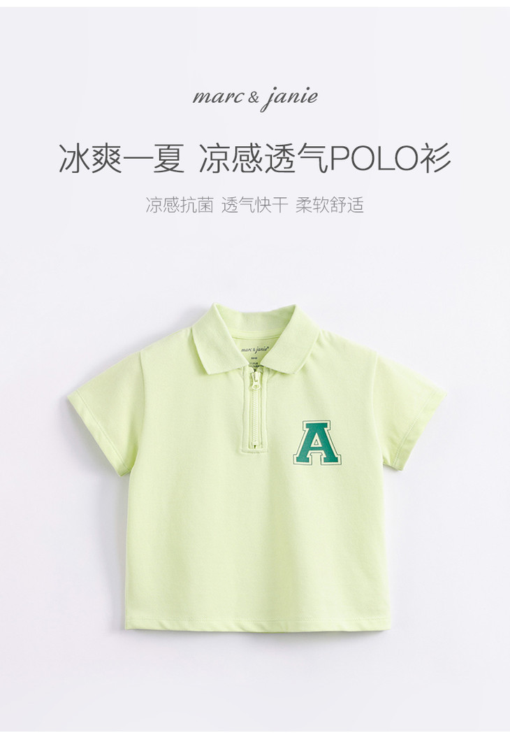 【凉感抗菌】马克珍妮夏装新款 男童拉链POLO衫短袖T恤230735
