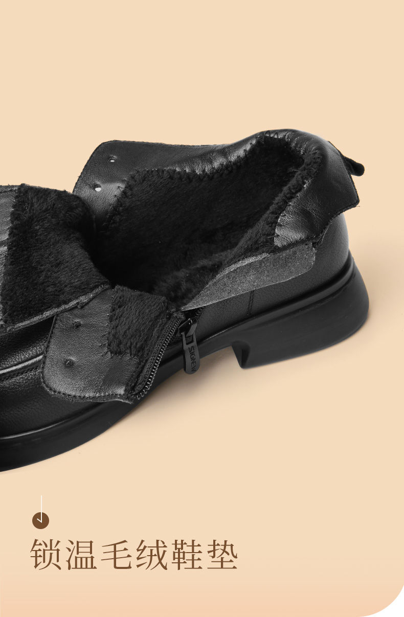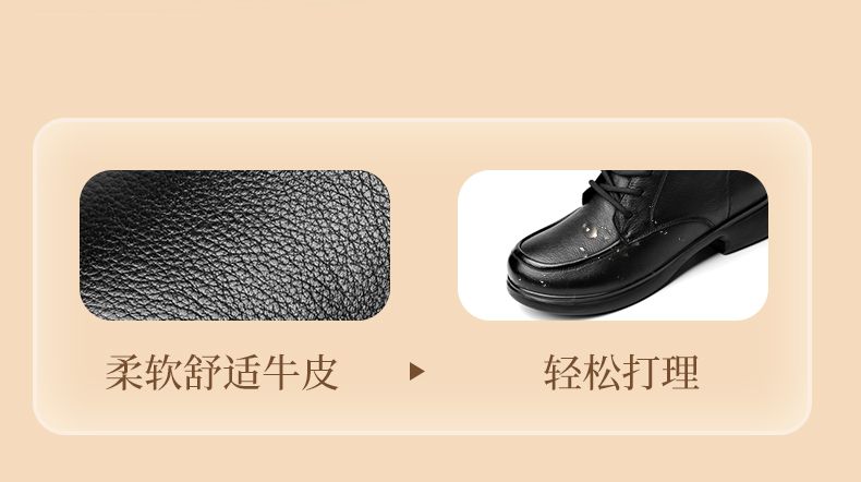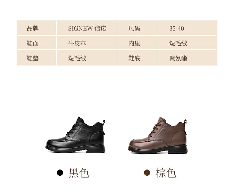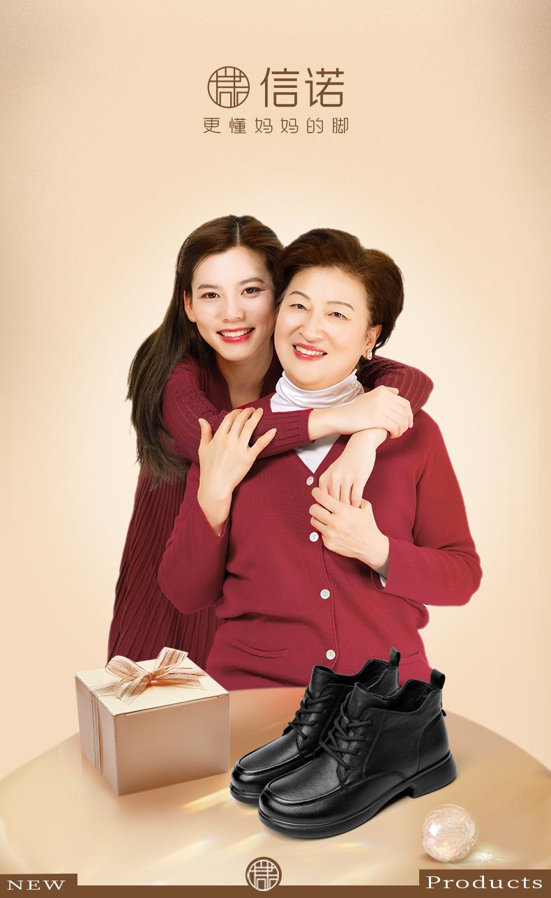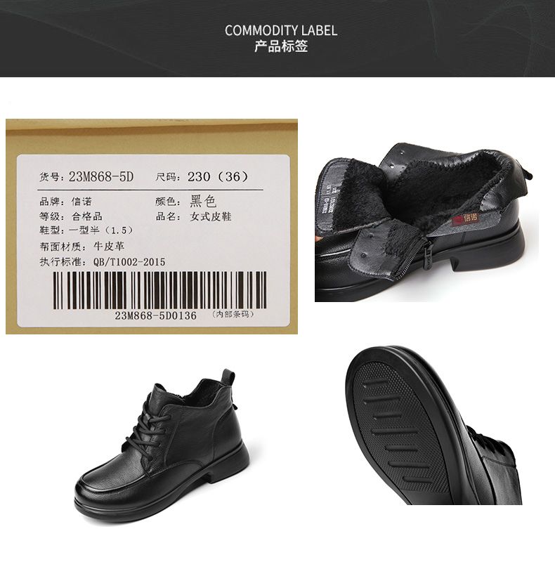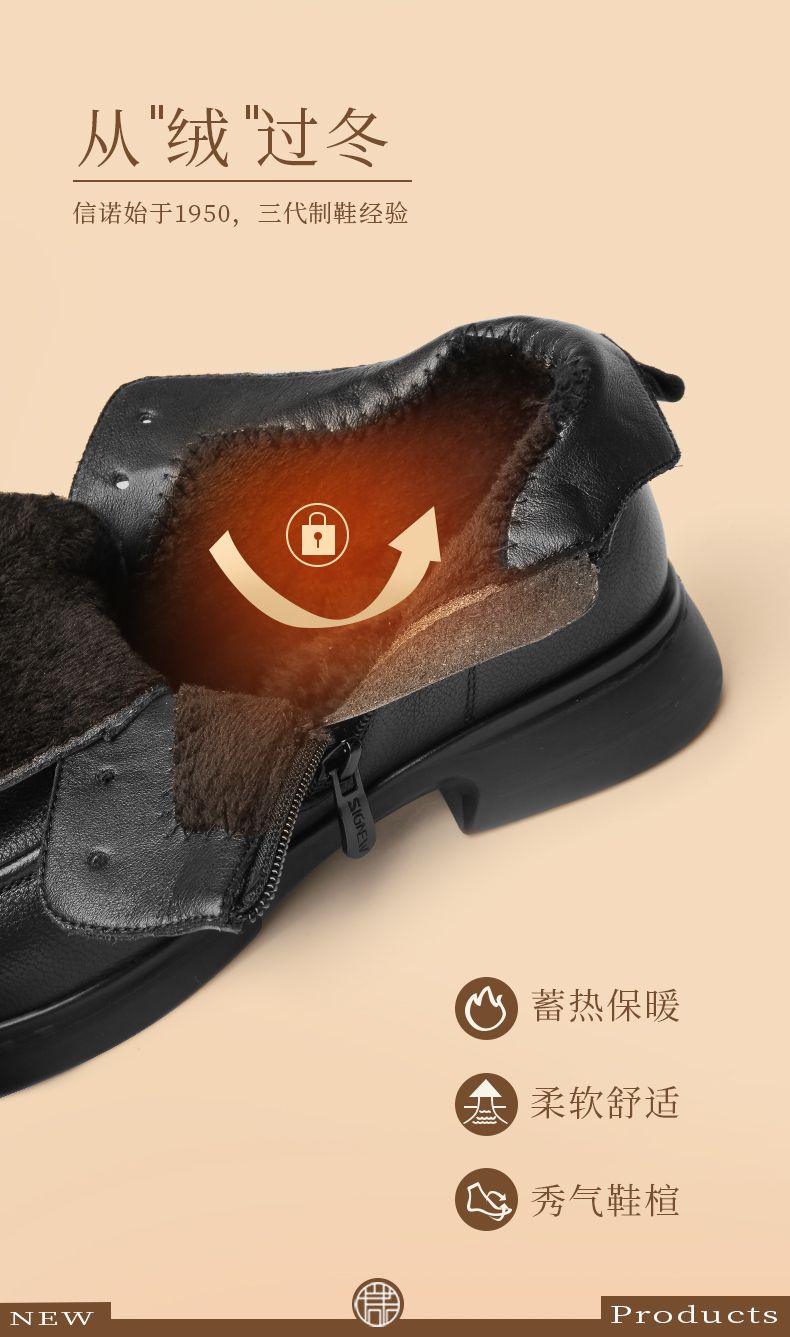 信诺真皮加绒妈妈短靴女2023冬季新款中老年棉鞋休闲软皮女鞋皮鞋23M868-5D