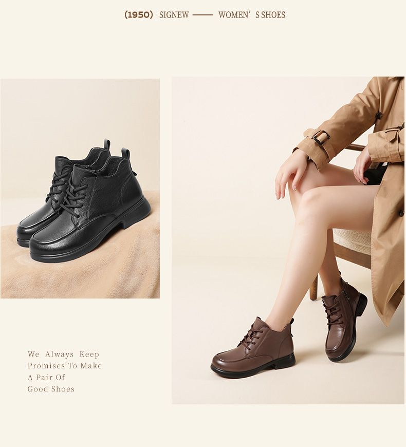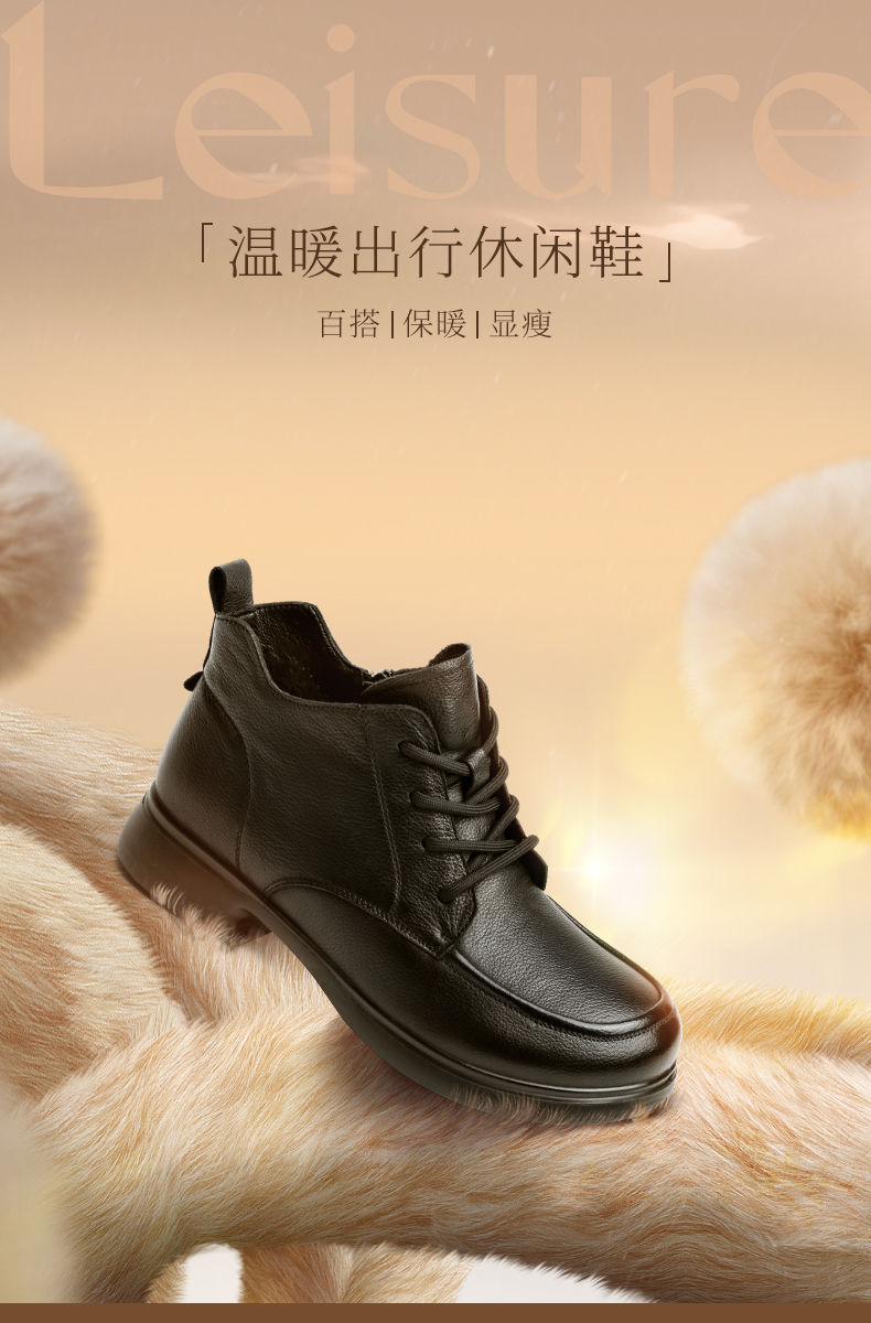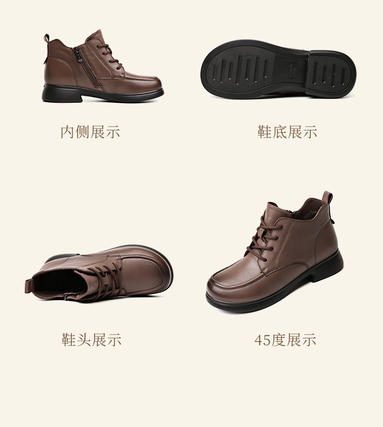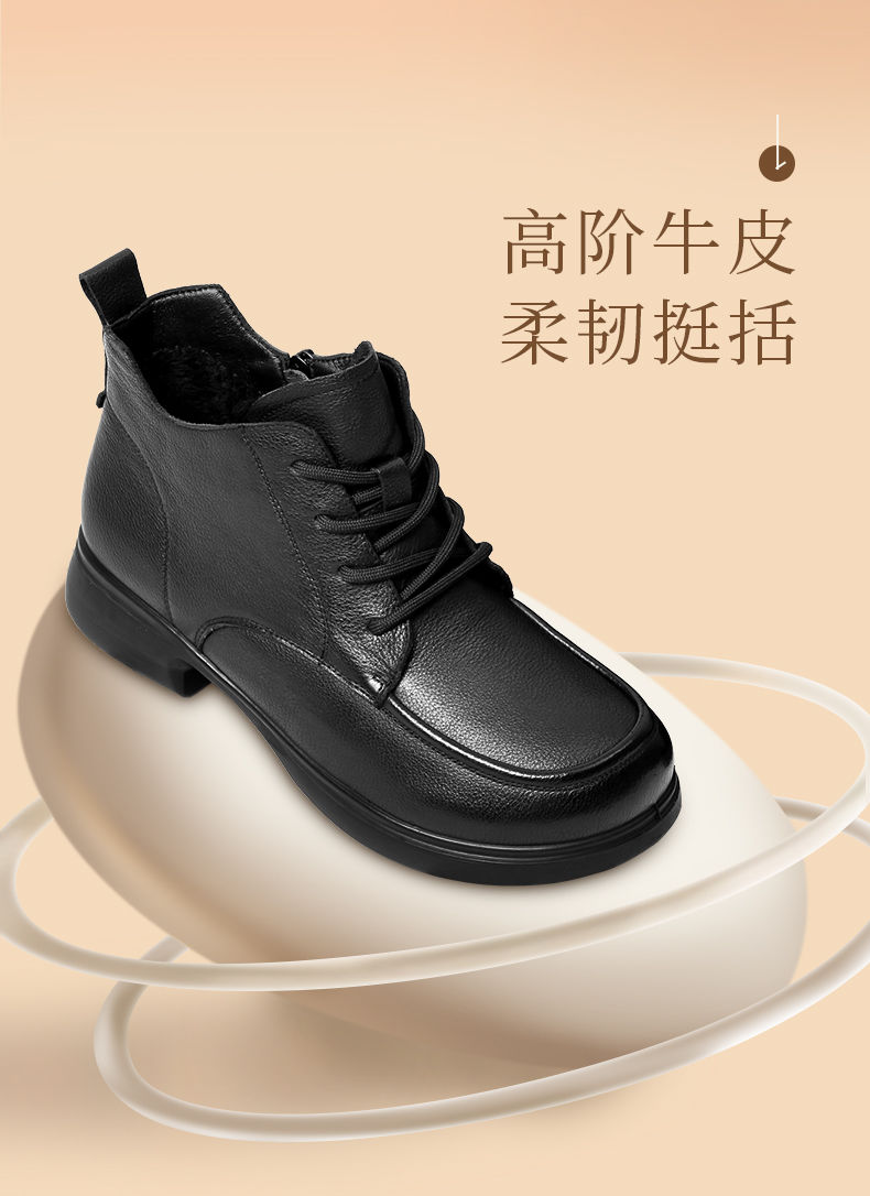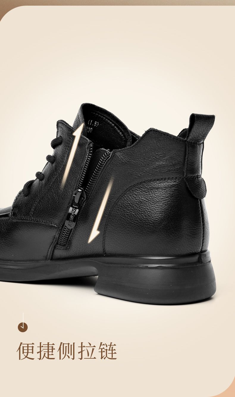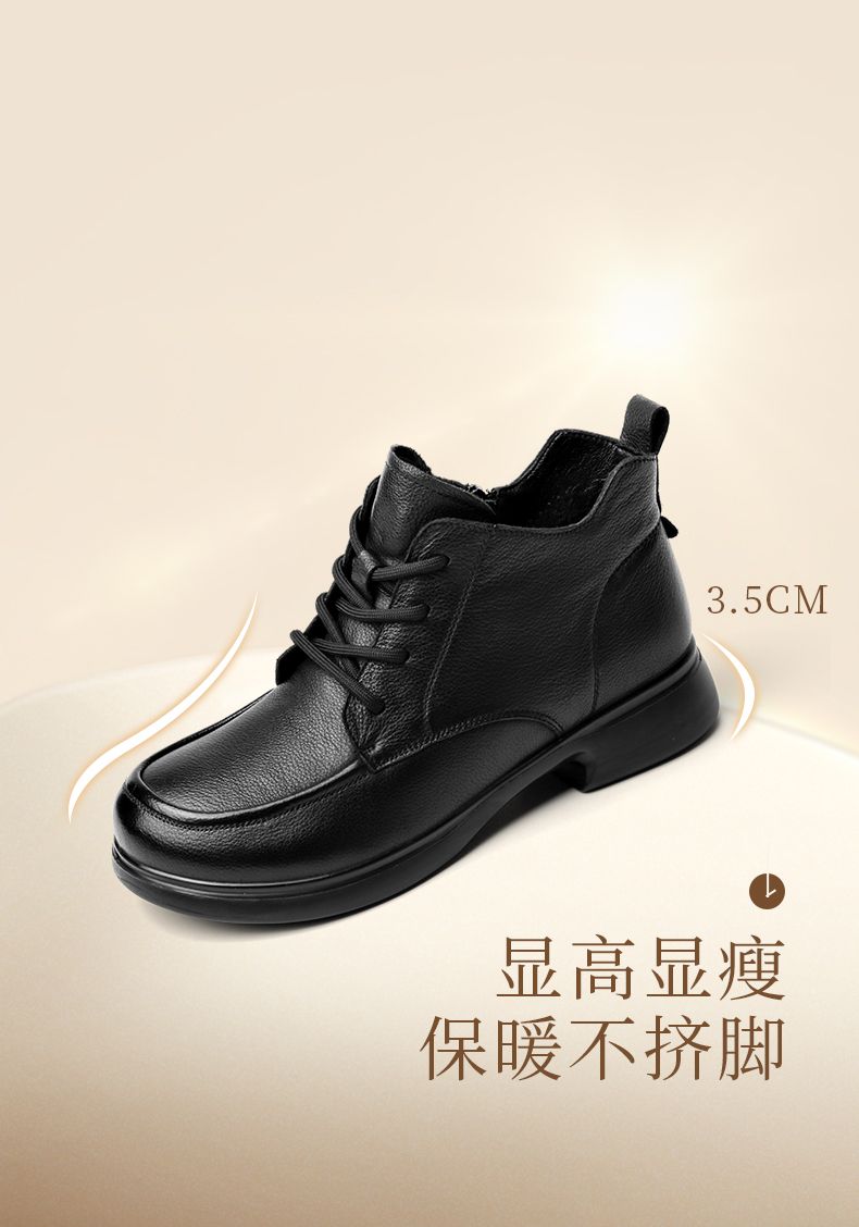 信诺真皮加绒妈妈短靴女2023冬季新款中老年棉鞋休闲软皮女鞋皮鞋23M868-5D