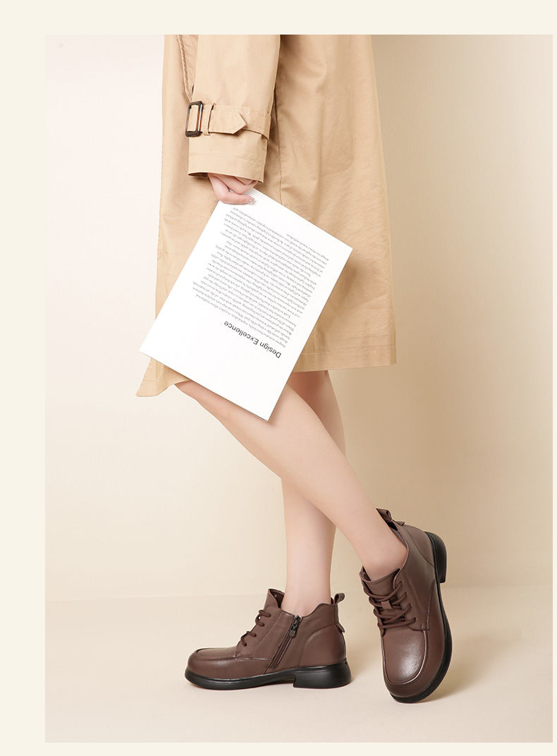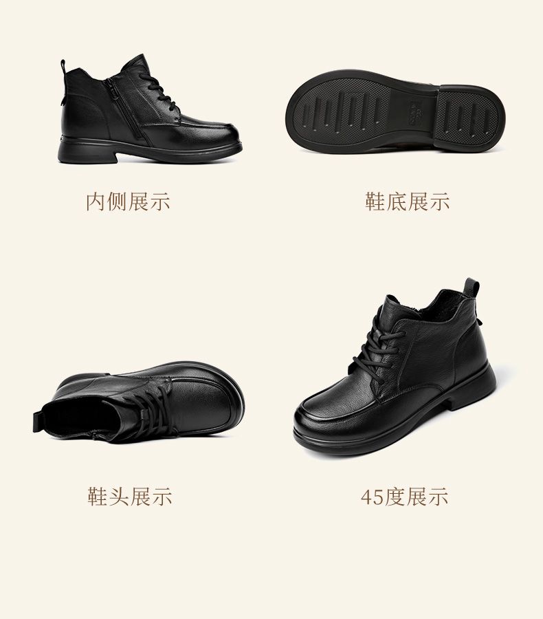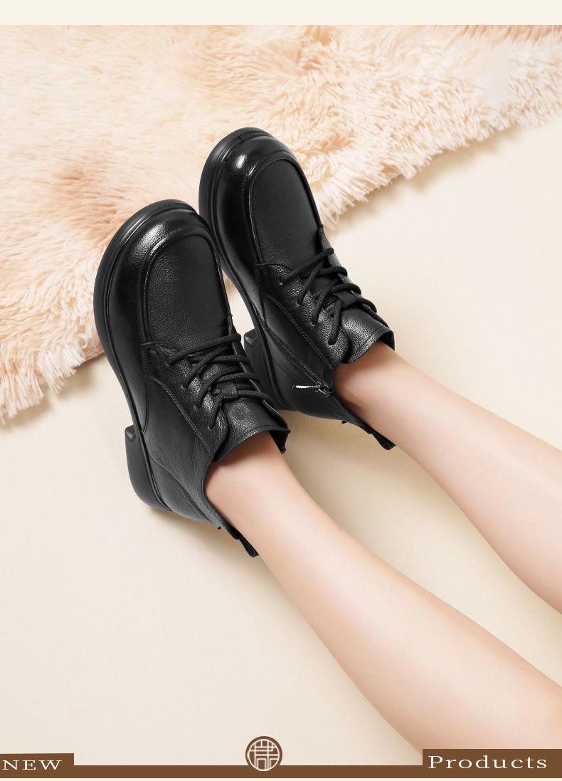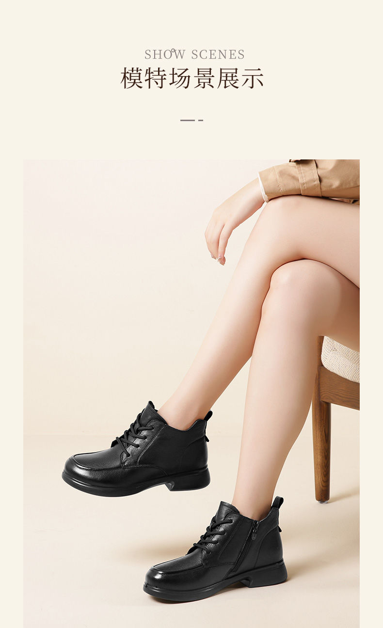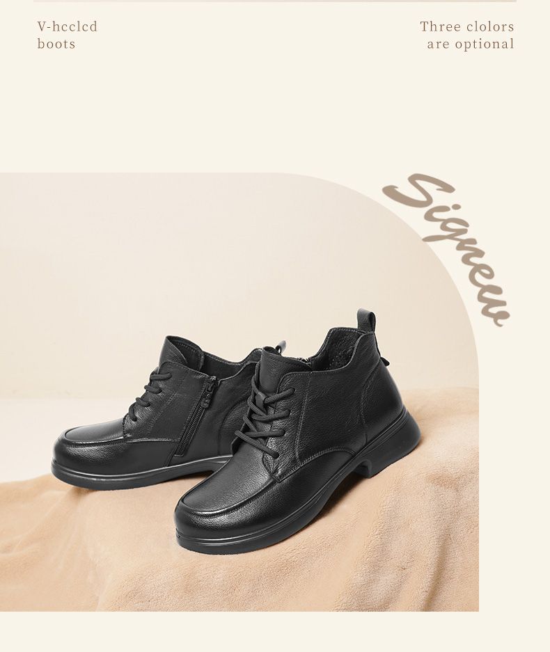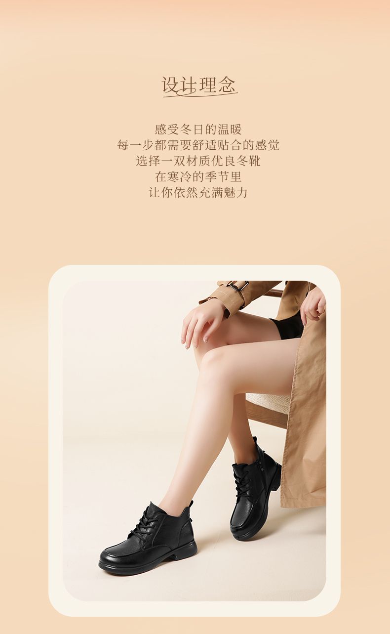 信诺真皮加绒妈妈短靴女2023冬季新款中老年棉鞋休闲软皮女鞋皮鞋23M868-5D