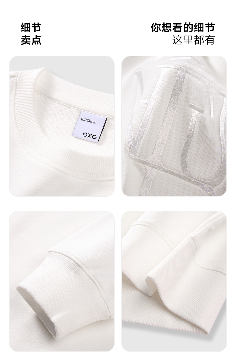 GXG男装 双色基础打底圆领卫衣男24年冬季热卖G24X314040