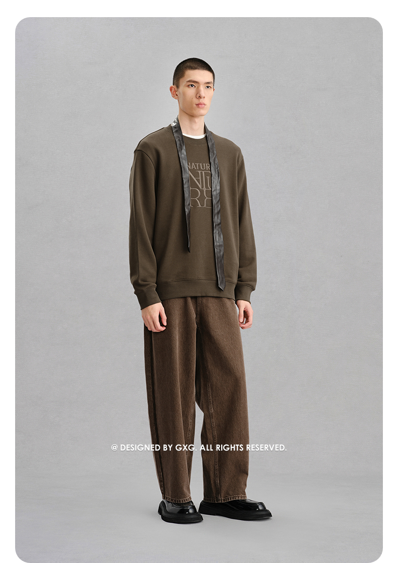 GXG男装 重磅做旧水洗弯刀宽松锥型潮流中腰牛仔裤 2025秋季新品