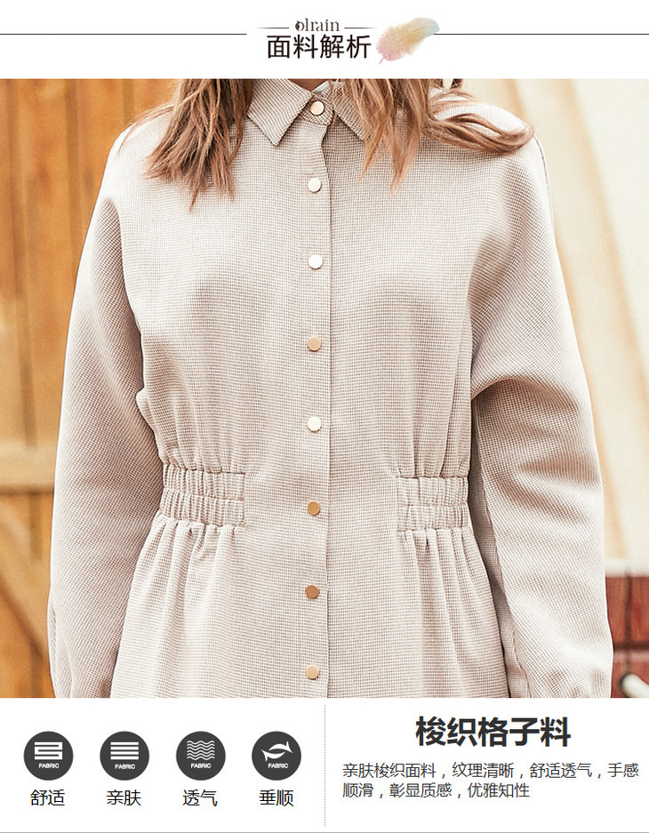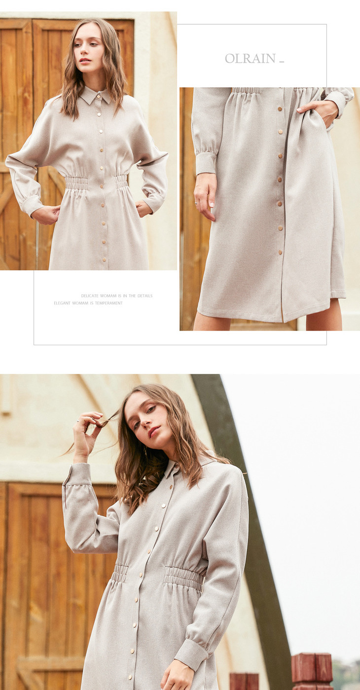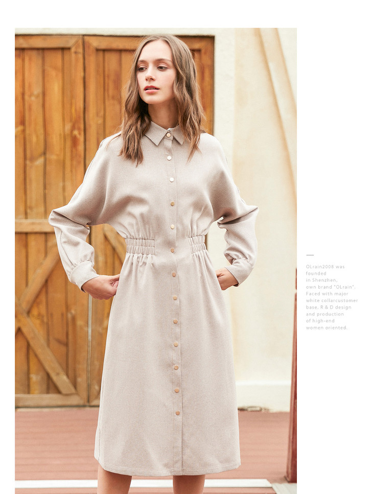 欧芮儿 新款女装收腰显瘦单排扣衬衫连衣裙女中长款
