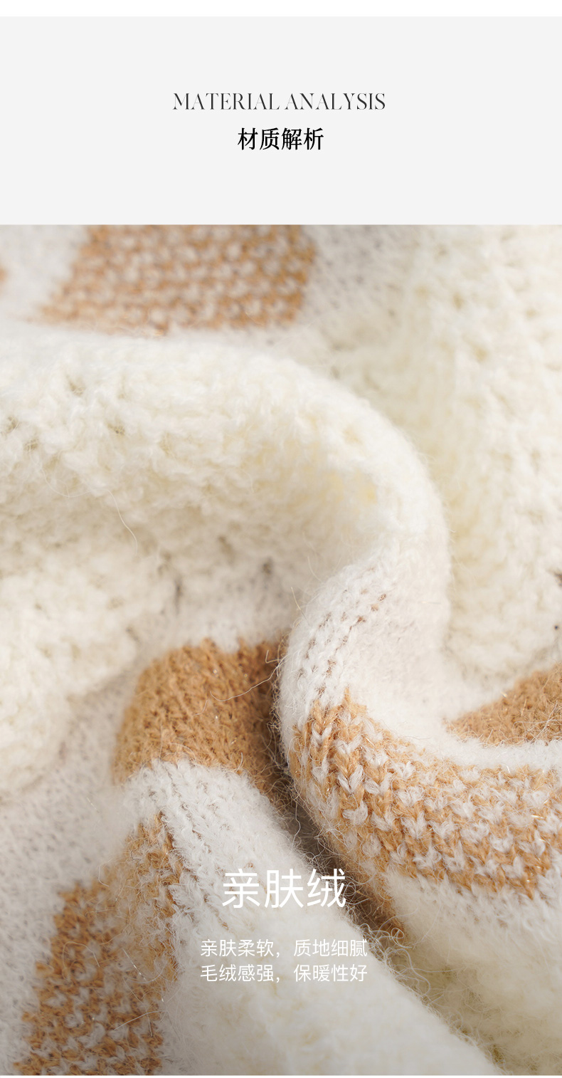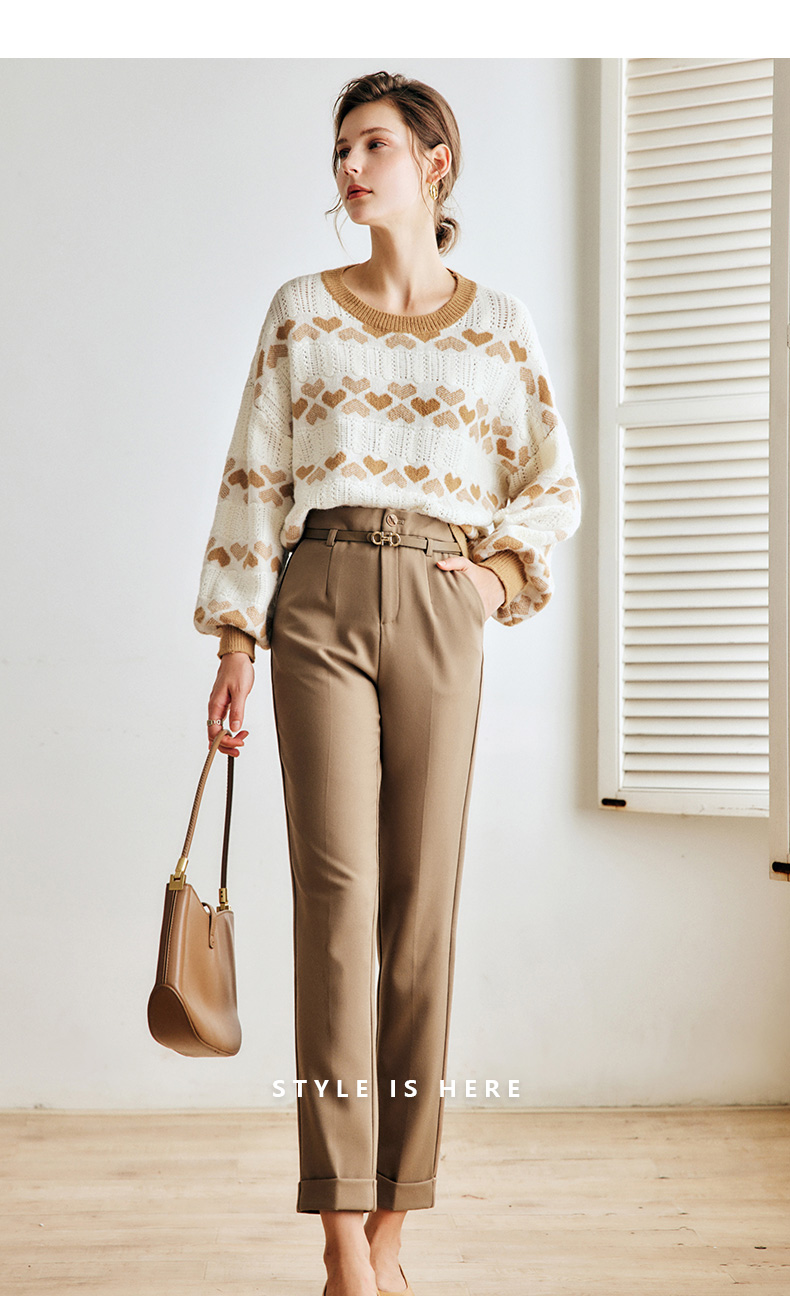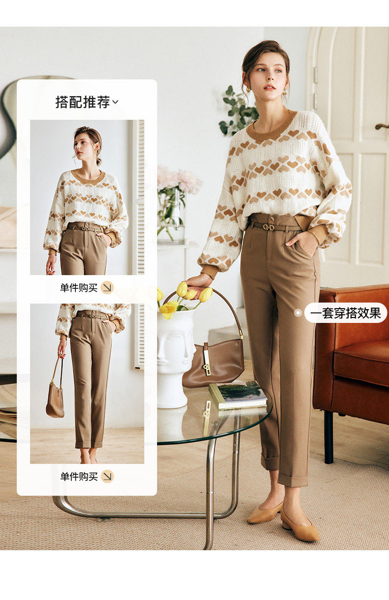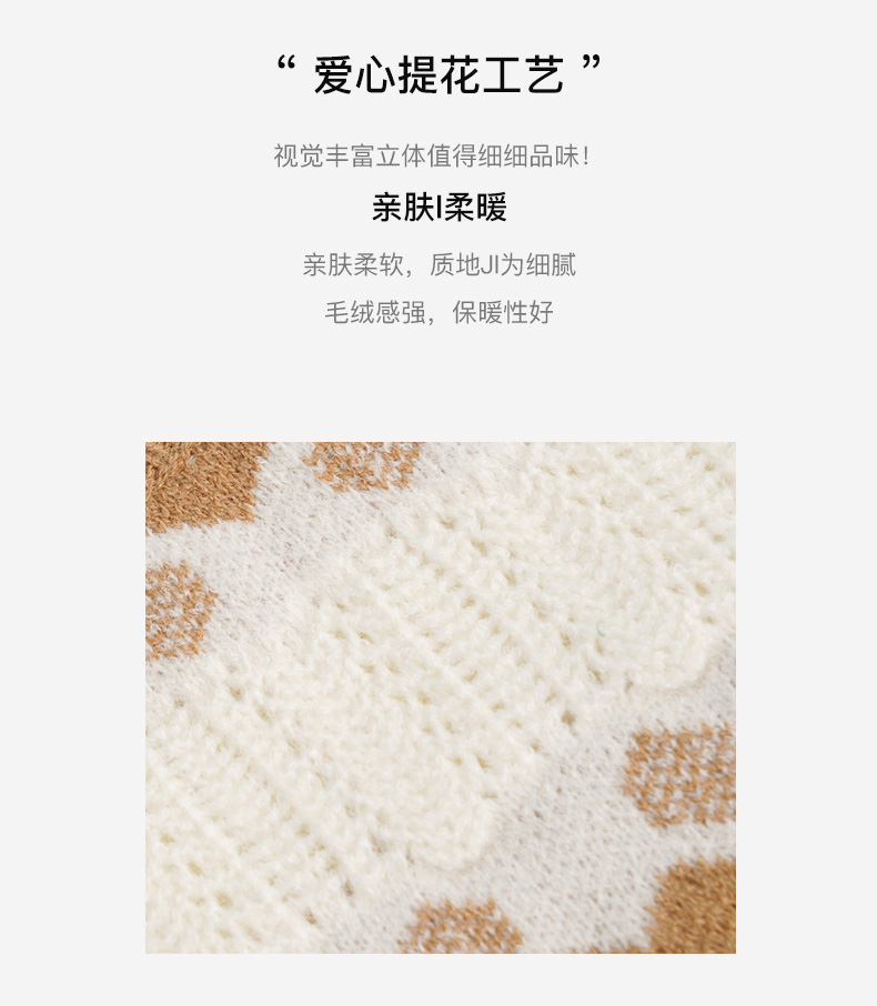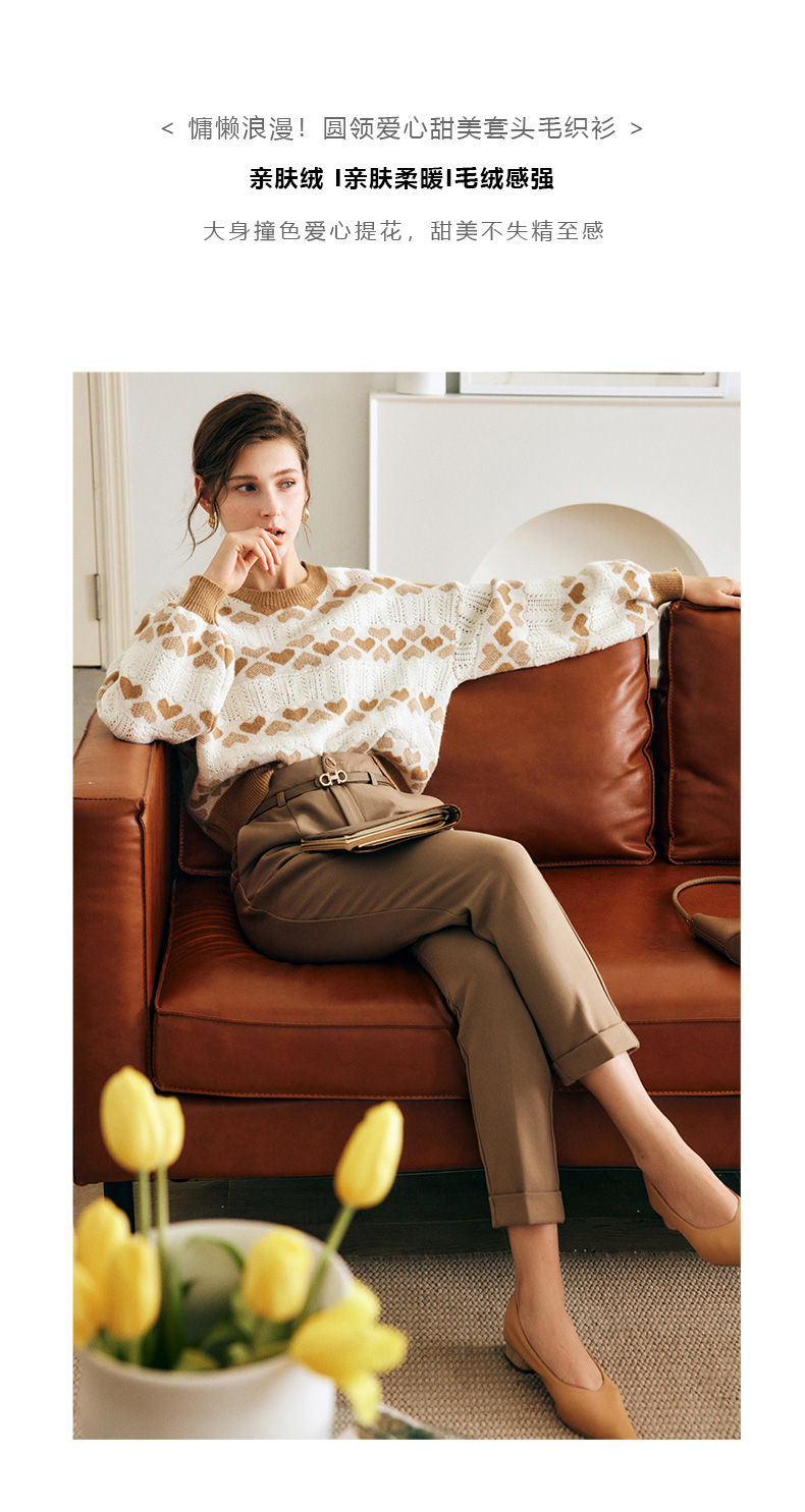 OLrain欧芮儿法式咖色提花毛衣女秋冬2022新款宽松爱心撞色针织衫