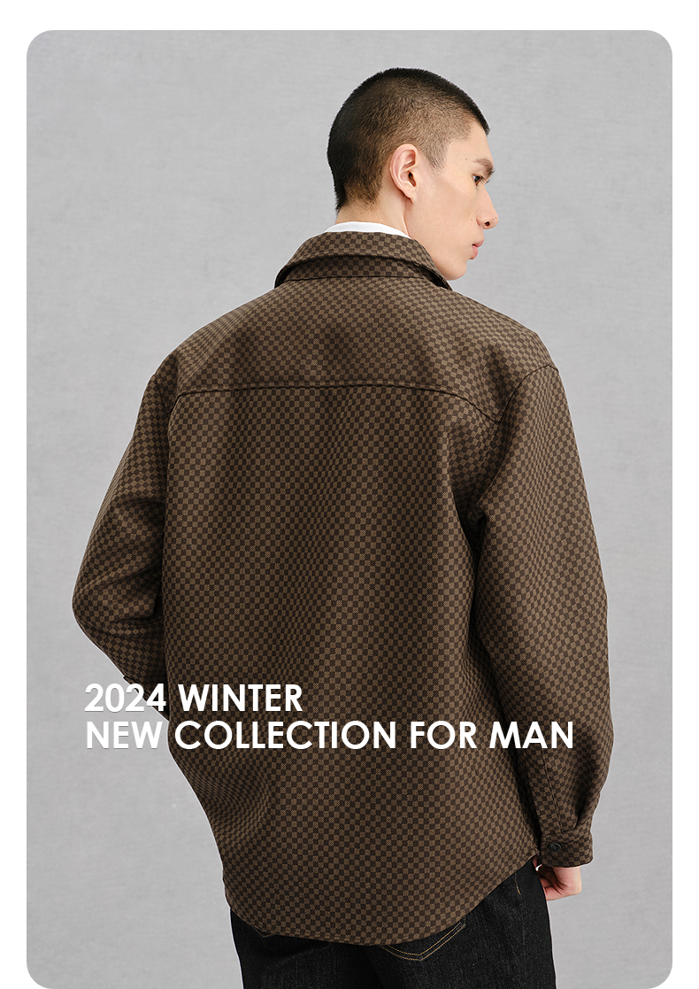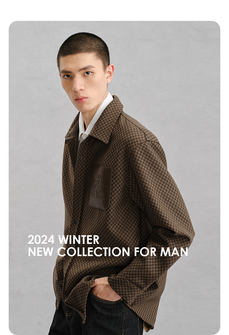 GXG男装 棕色肌理斜纹通勤短款大衣 24冬热卖G24X064027