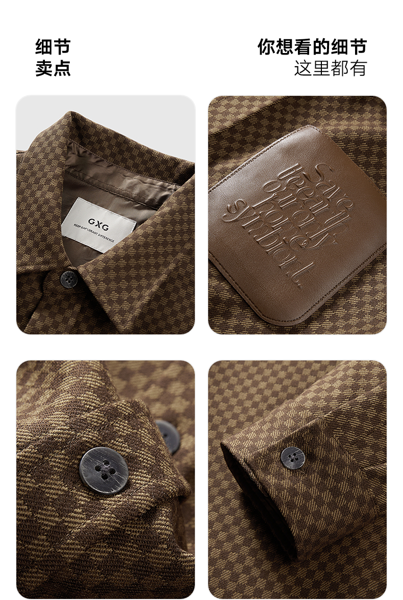 GXG男装 咖啡色口袋设计通勤长袖衬衫24冬热卖G24X034050
