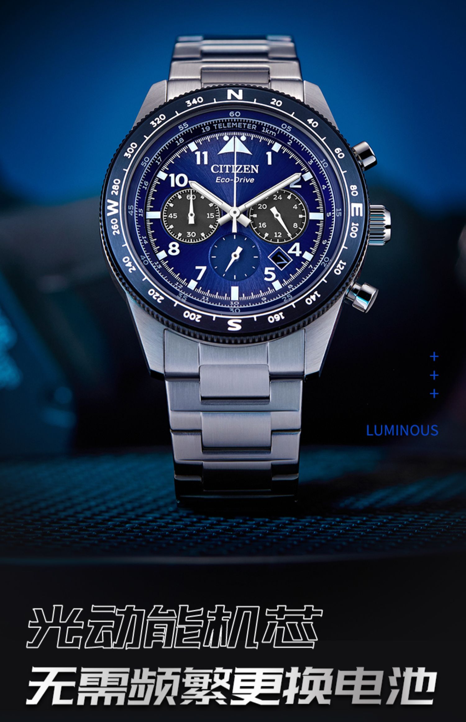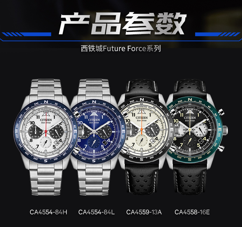 西铁城FF系列潮流钢带光动能男表CA4554-84H