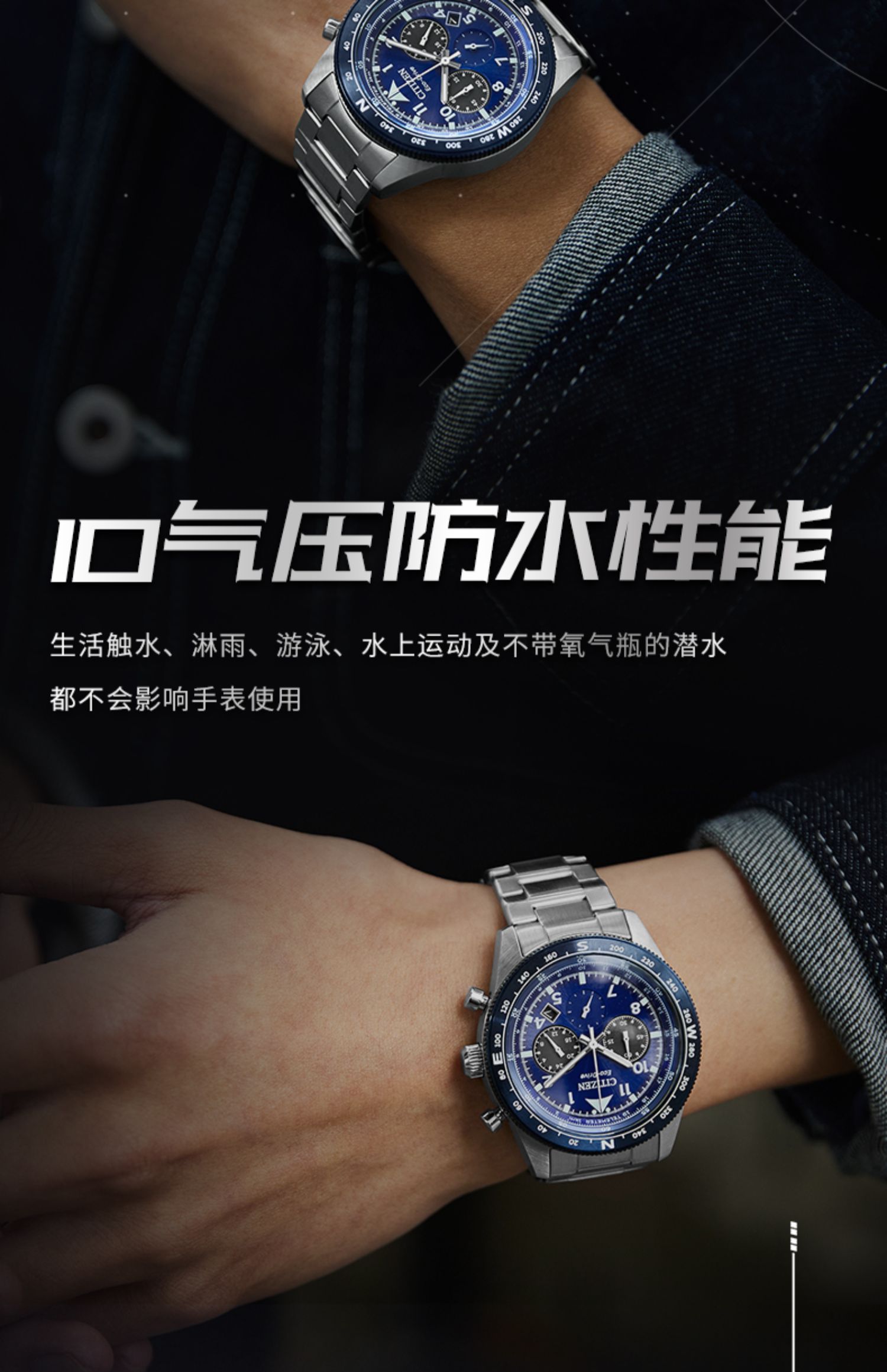 西铁城/CITIZEN新品空中之鹰系列光动能电波男士手表CB0158-10H