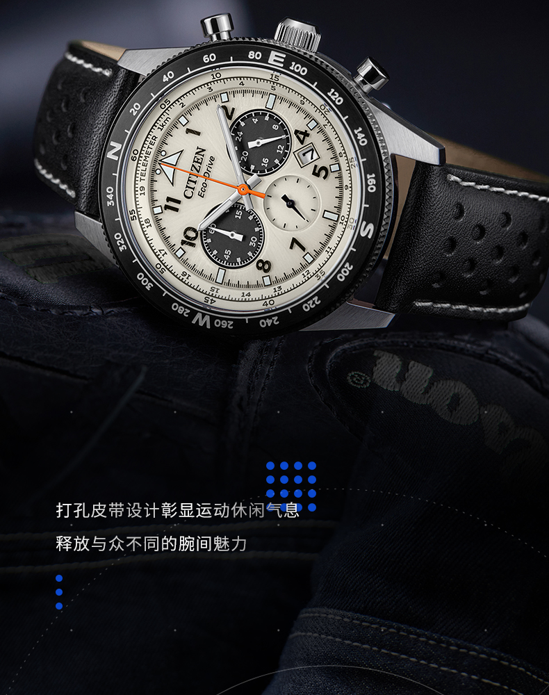 西铁城官方日本正品时尚休闲光动能夜光防水皮带男表CA0739-13H