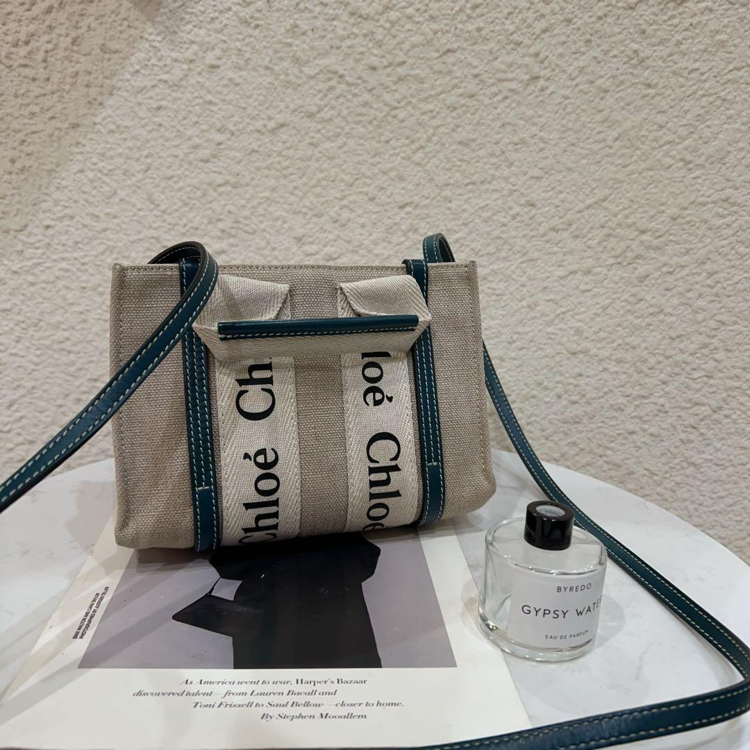 正品二手 克洛伊 Woody mini 蓝色 帆布 托特包👜 97新 20*15。复古风格的首选
