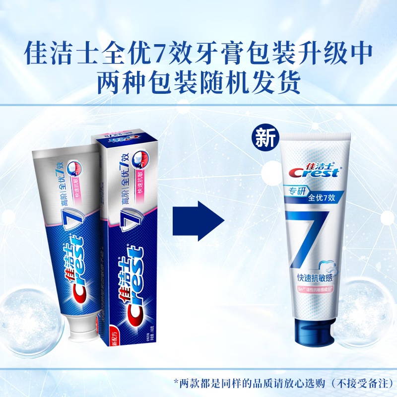 佳洁士(CREST)全优七效牙膏清洁牙齿呵护牙龈清新口气成人牙膏男女 强健牙釉质牙膏180g*3支