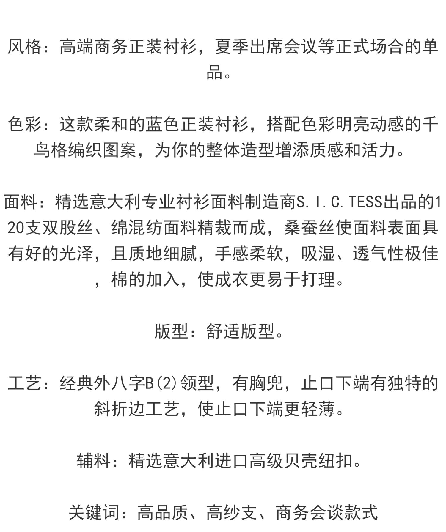 【自营】DAYANG/大杨创世 大杨创世S.I.C.TESS意大利120支千鸟格易打理衬衫 TR1833913-3