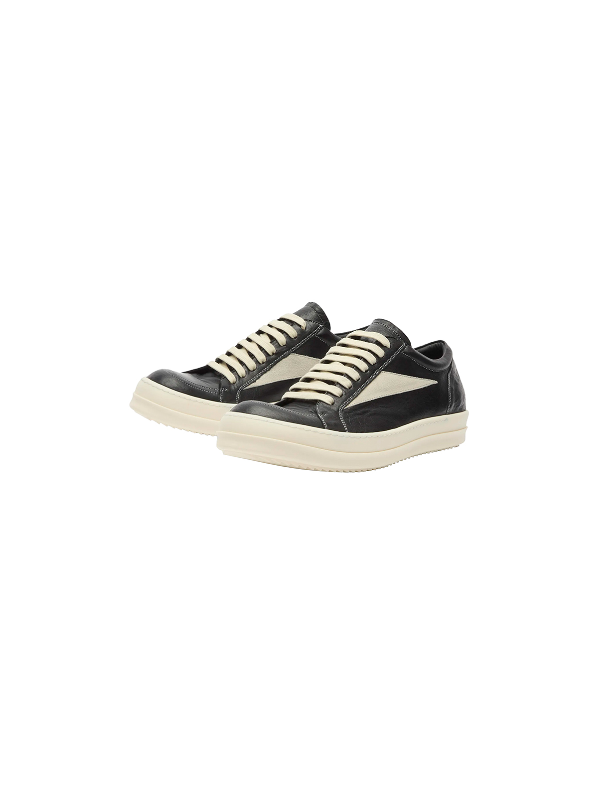 Rick Owens 复古运动鞋将柔软的小羊皮与大胆的对比色调相结合,搭配标志性的侧面三角贴片和厚实的橡胶鞋底,展现出无可置疑的锋芒。