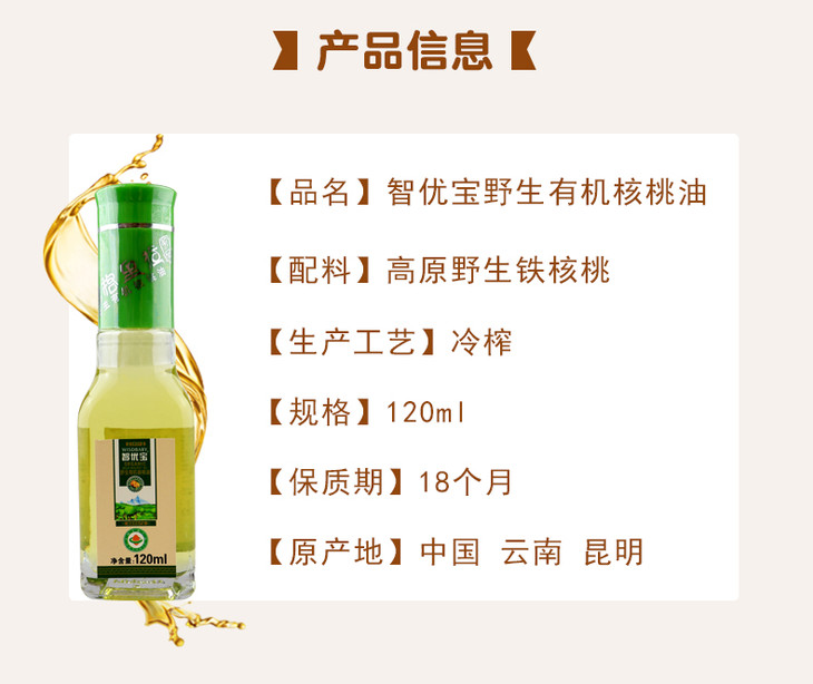 智优宝野生有机核桃油120ml