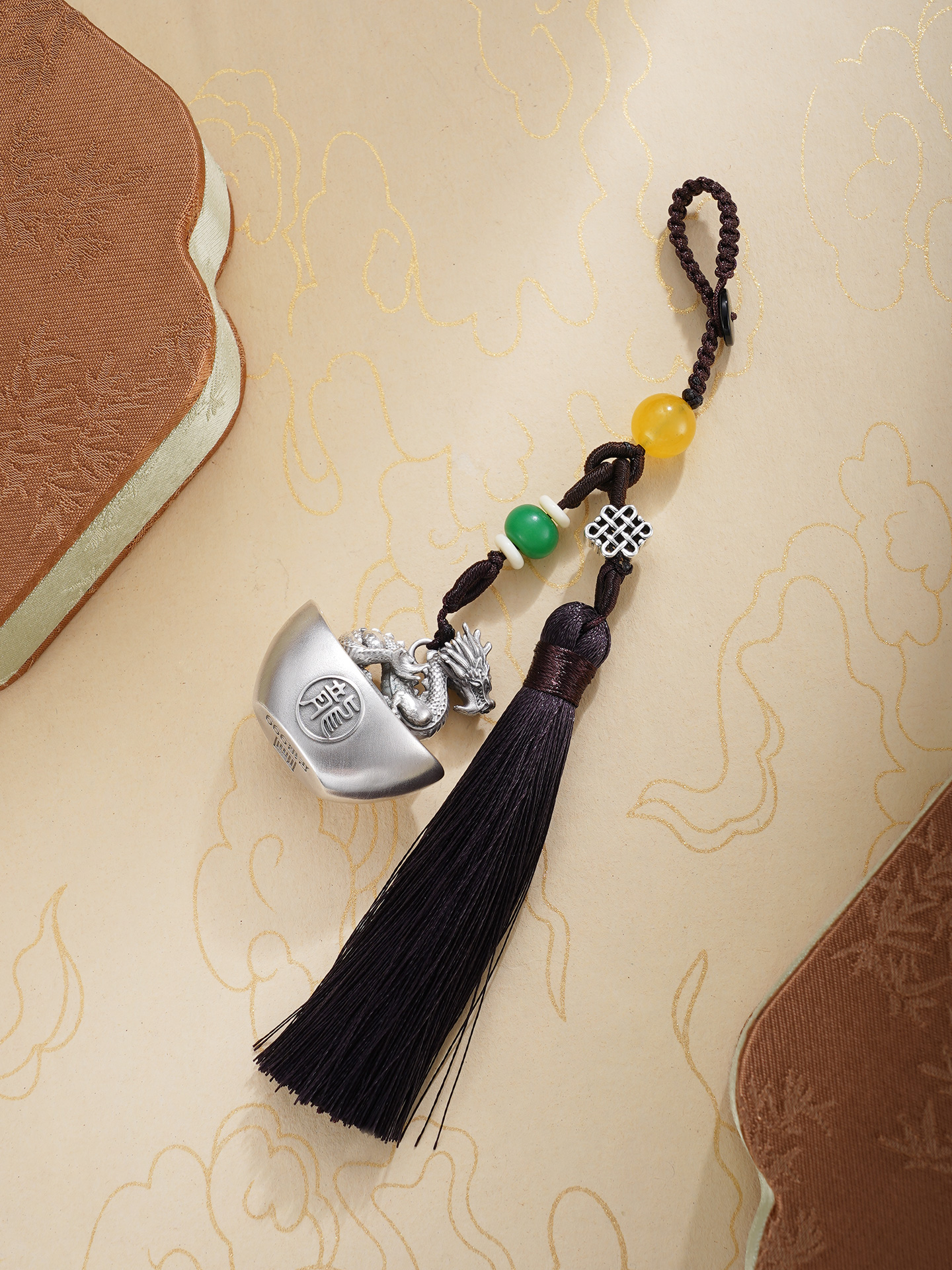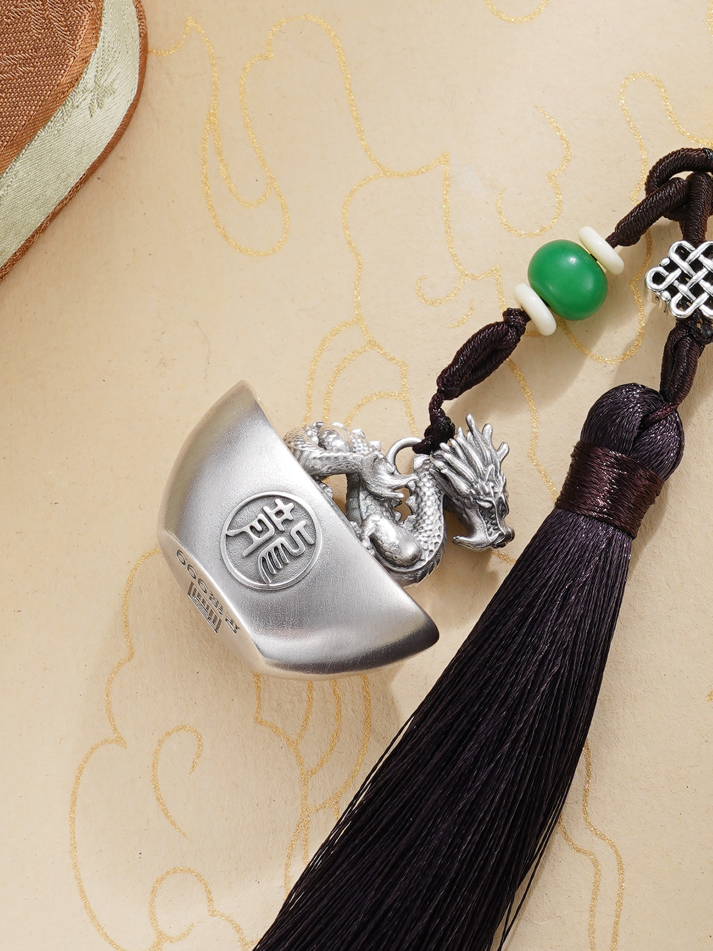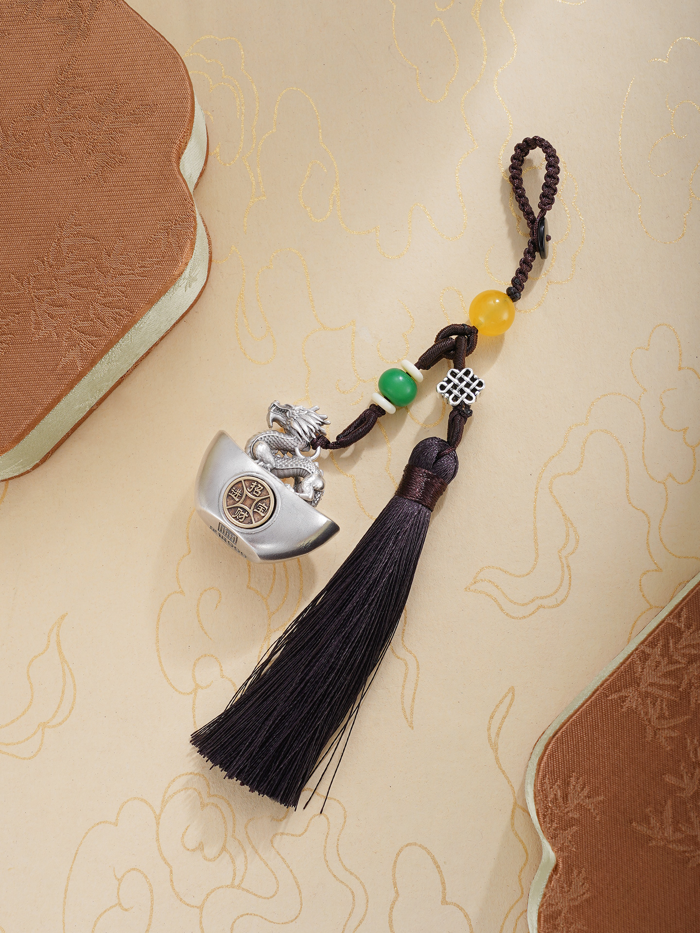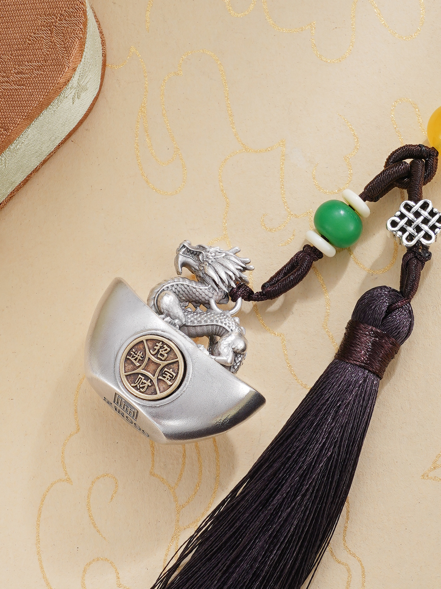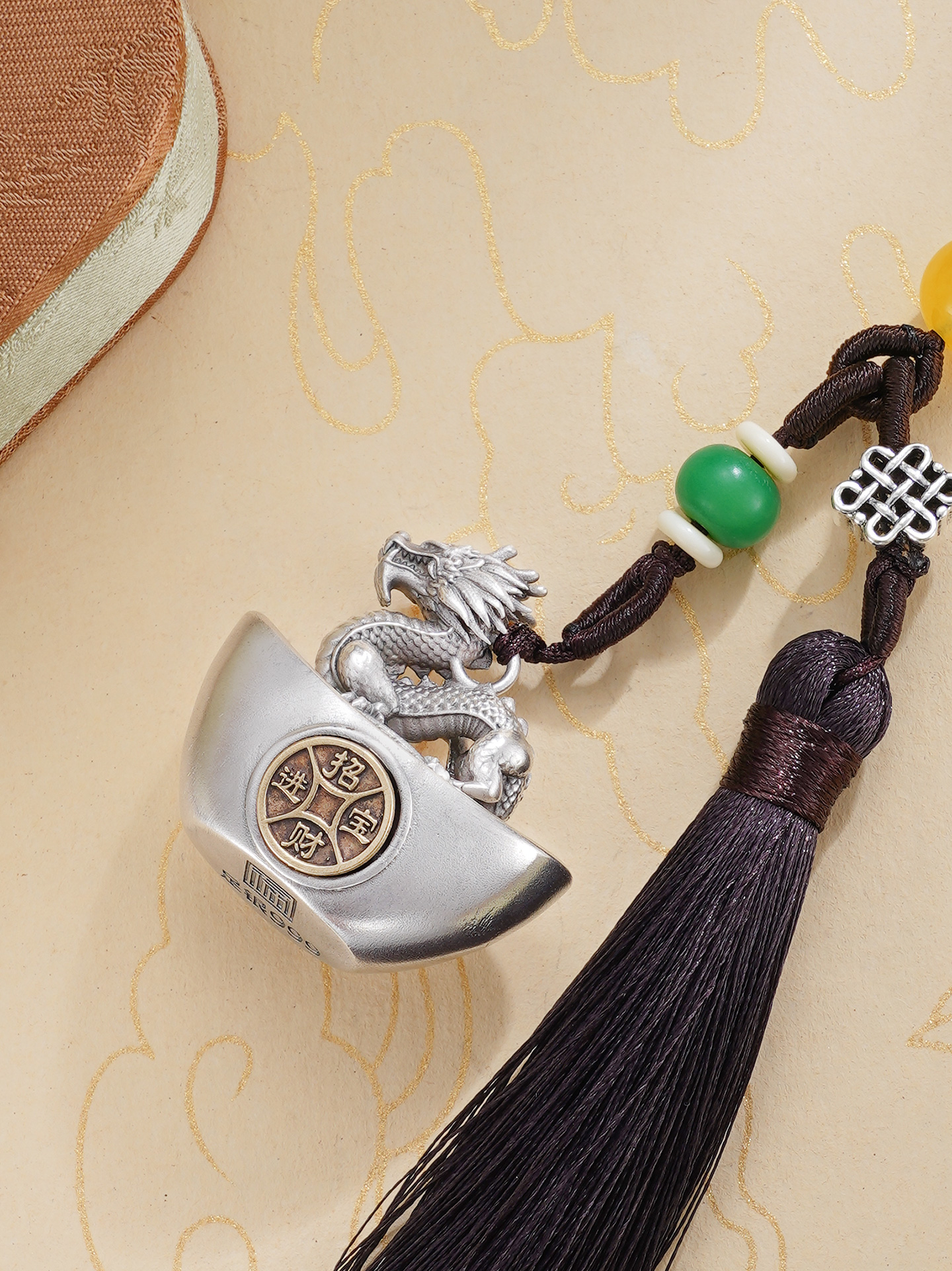 【规格】:元宝长约3.3cm,绳长约9cm,流苏长约10cm