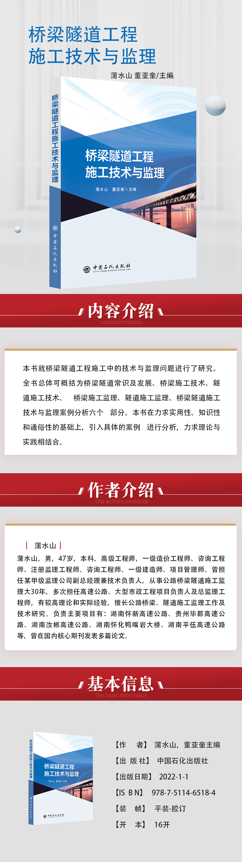 本书*桥梁隧道工程施工中的技术与监理问题进行了研究。 全书总体可概括为桥梁隧道常识及发展、桥梁施工技术、隧道施工技术、 桥梁施工监理、隧道施工监理、桥梁隧道施工技术与监理案例分析六个 部分。本书在力求实用性、知识性和通俗性的基础上,引入具体的案例 进行分析,力求理论与实践相结合。