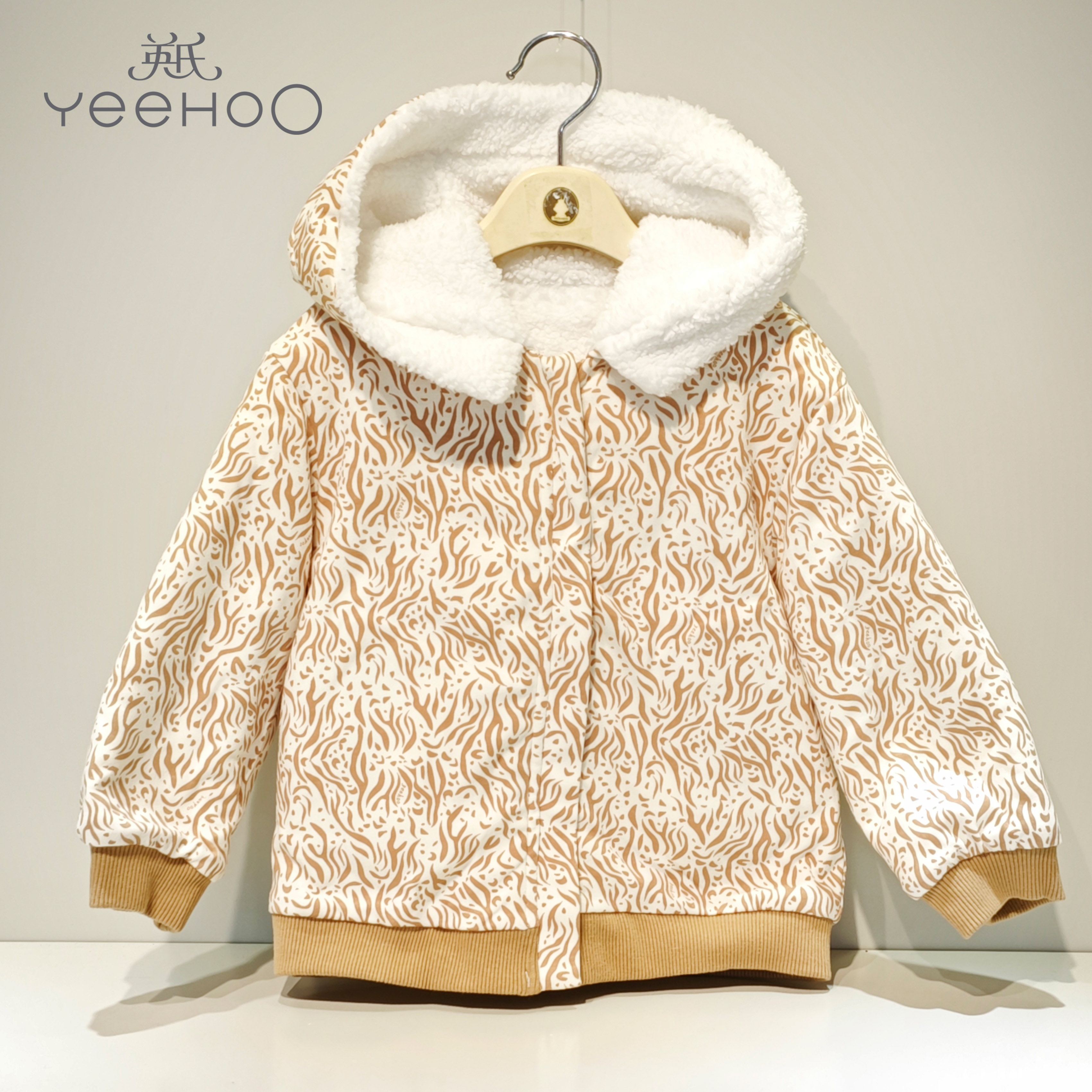 英氏-童衣类(秋)D0英针短帽外套 米白100CM