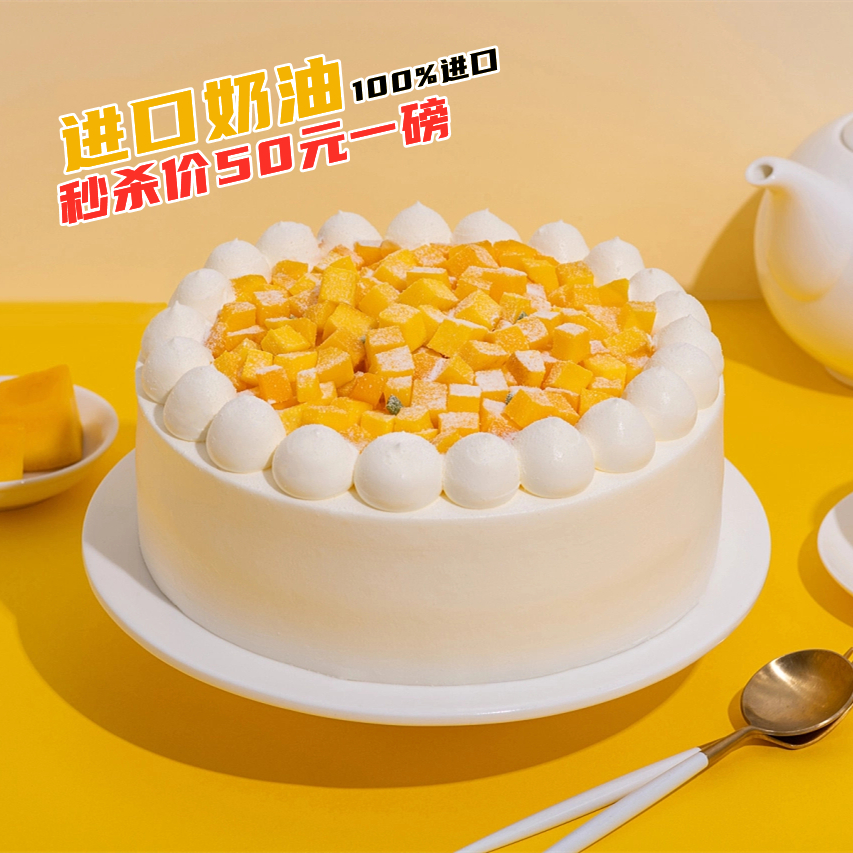 卡劵抢购后,使用须提前一天添加客服进行预约,2磅起使用噢,款式为芒果多多进口动物奶油蛋糕。
