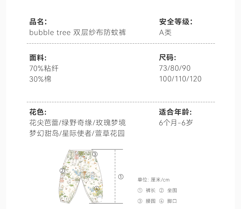 【云优选】BUBBLE TREE防蚊裤夏季薄款纱布束腿裤男女宝宝长裤子