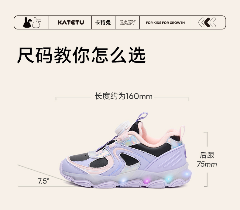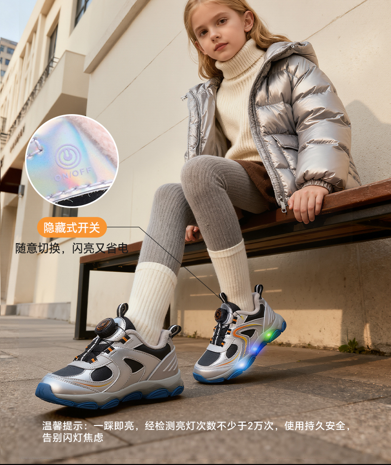 卡特兔童鞋儿童运动鞋2025冬季新品闪灯鞋防滑耐磨加绒棉鞋跑步鞋