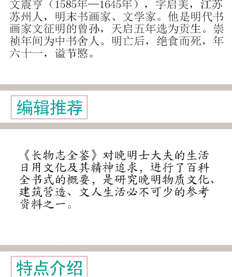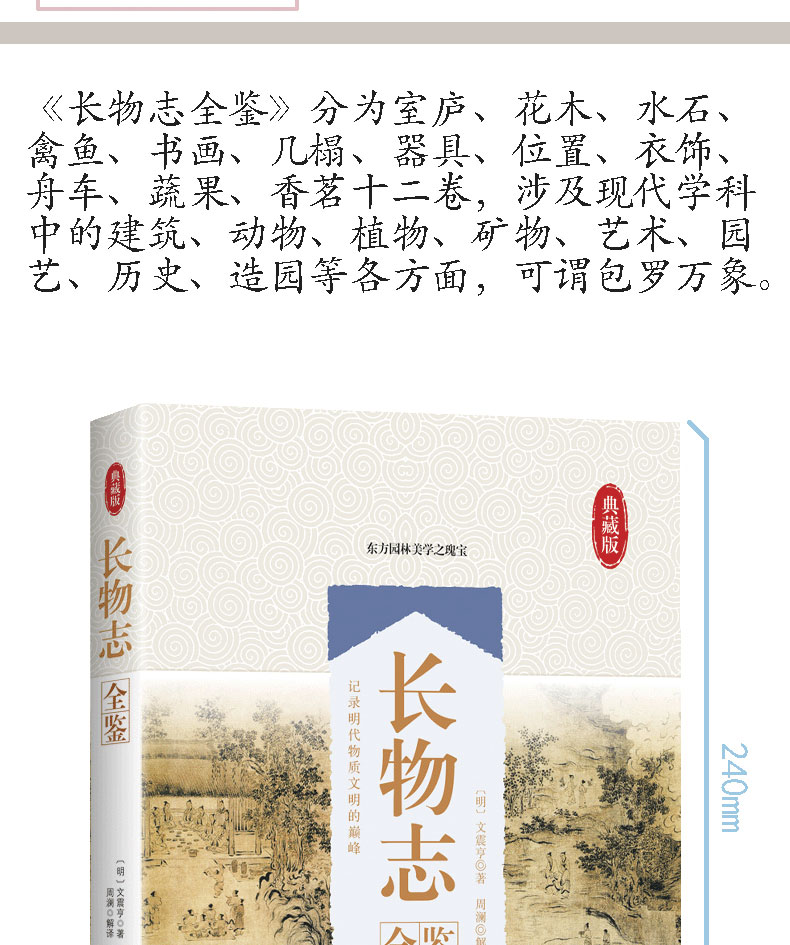 【正版】长物志全鉴(典藏版)国学普及读物 历史知识读物 中国古代园林艺术的基本构建 古代居宅所用器物的制式的摆放品位艺术