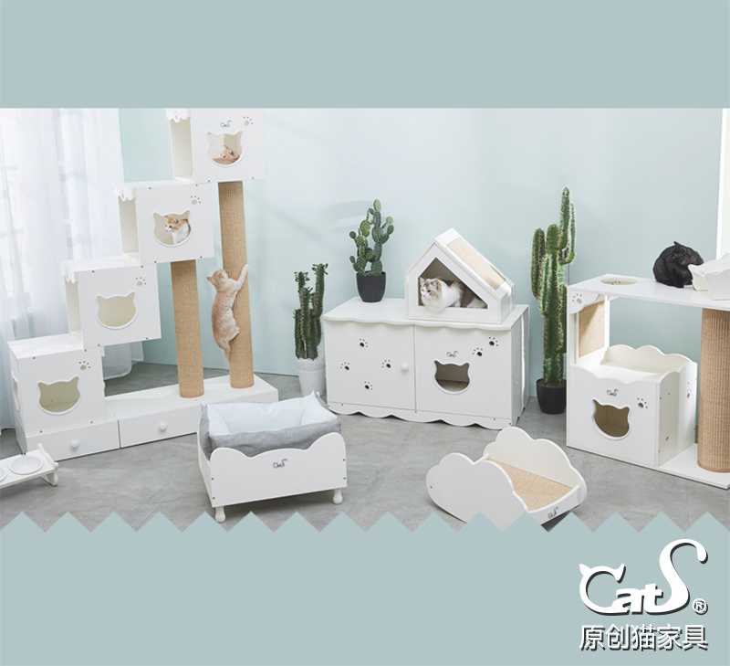 CatS猫家具 天空之城云之上 拼色木制猫爬架 猫屋剑麻猫抓柱包邮