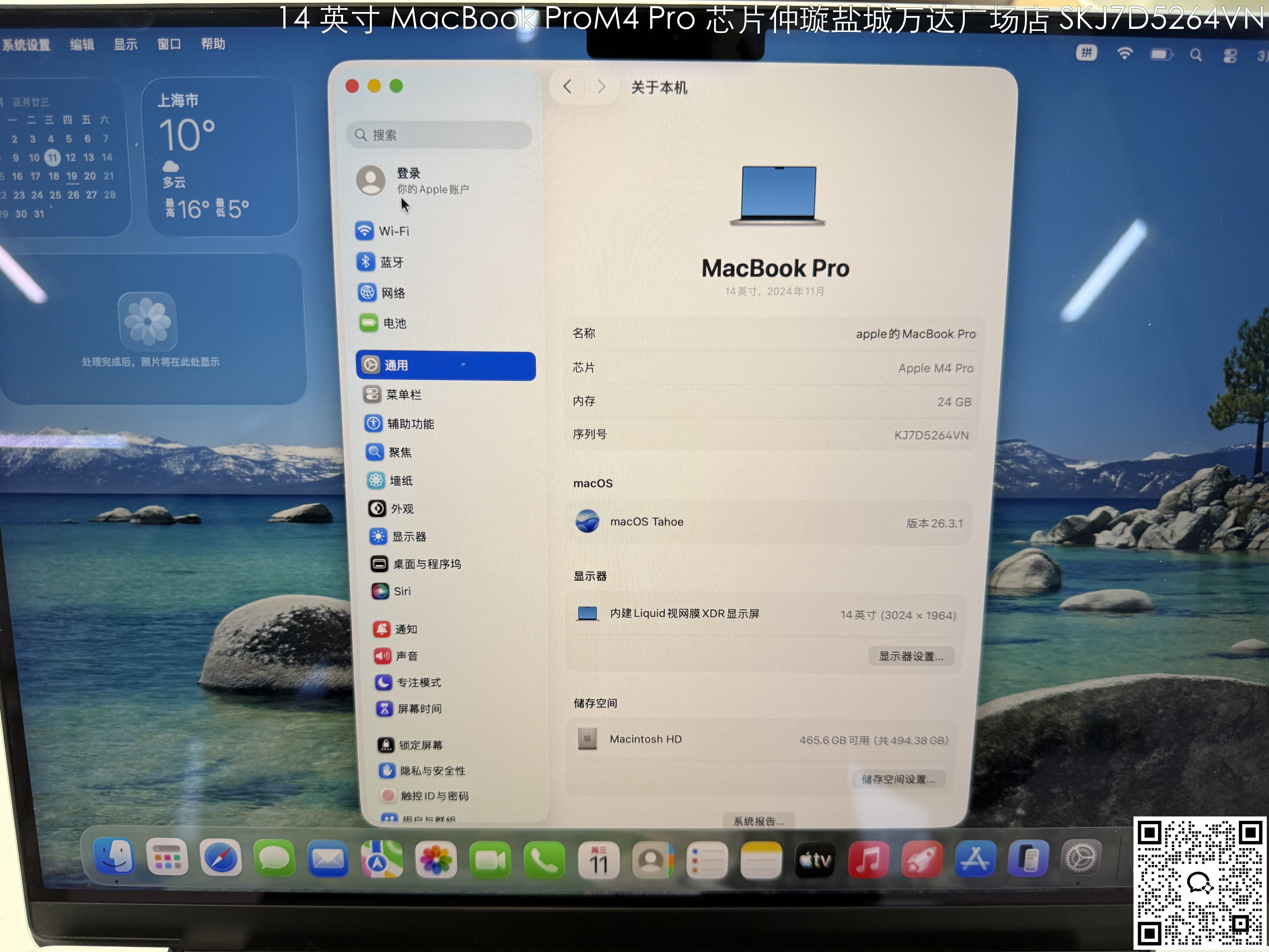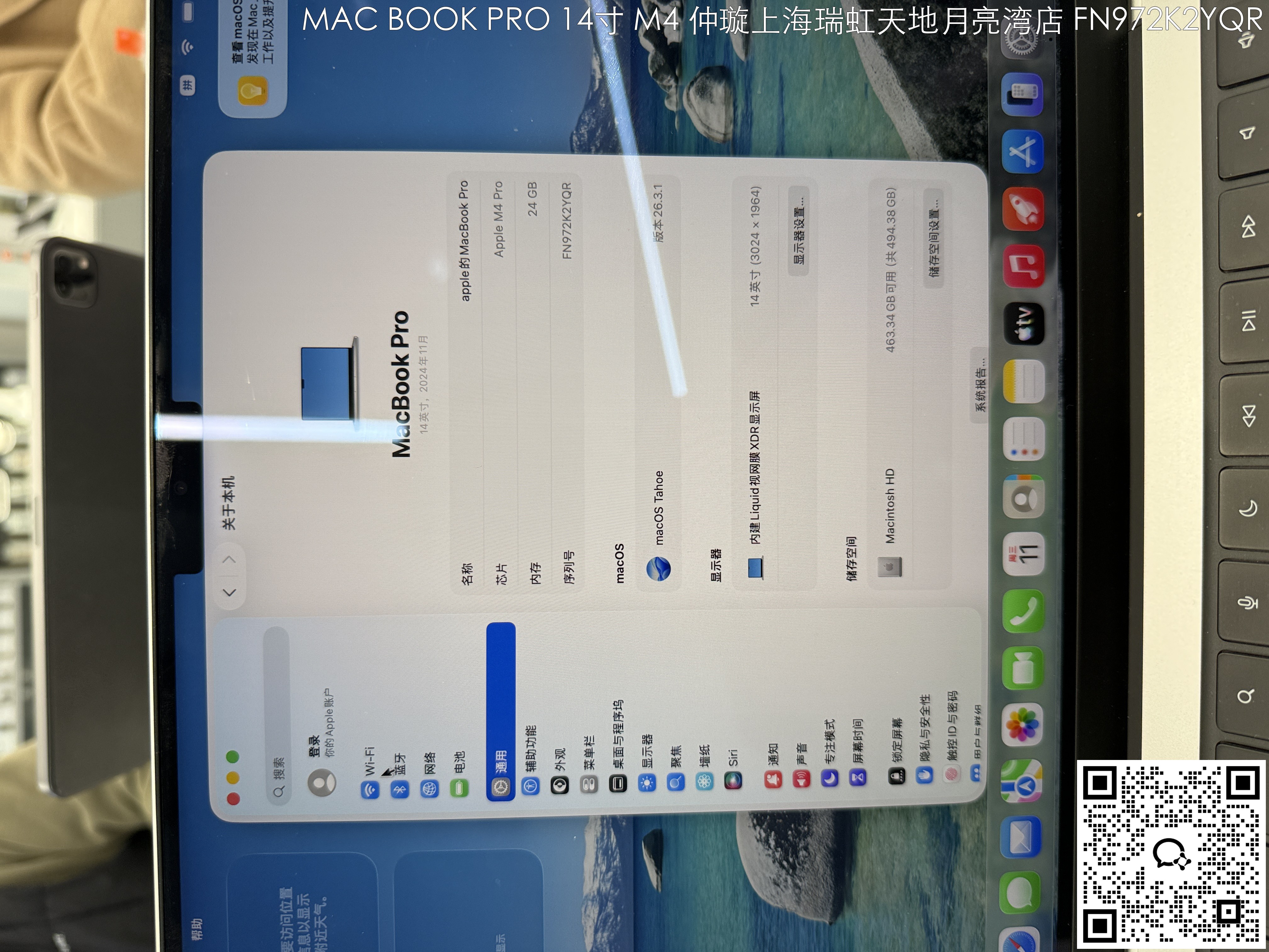 【门店样品】1️⃣14 英寸 MacBook Pro: Apple M4 Pro 芯片店铺同步在售,库存更新可能不及时看中直接扫码联系店内销售。