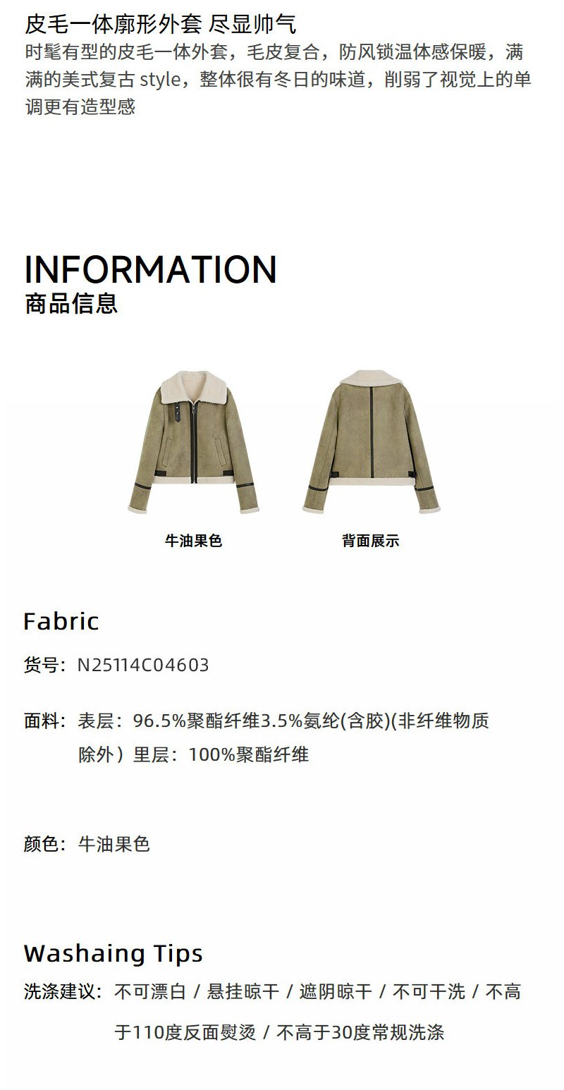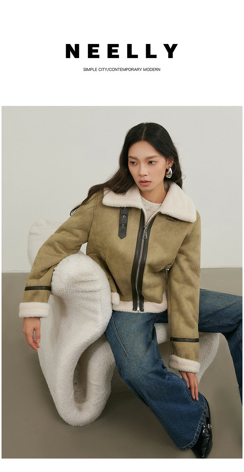 NEELLY纳俪商场同款冬新款翻领简约外套女百搭潮流时尚保暖机车服N25114C04603