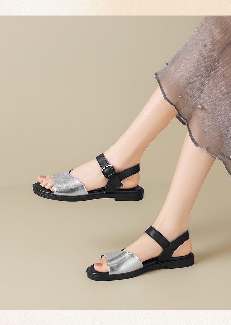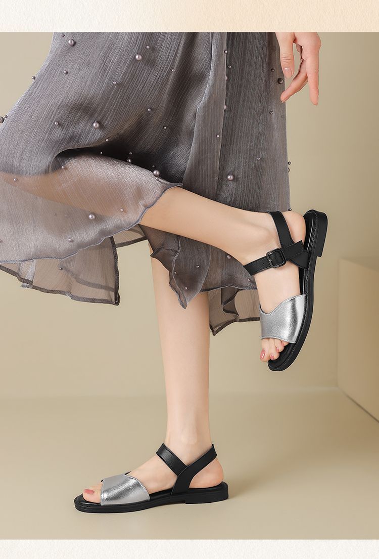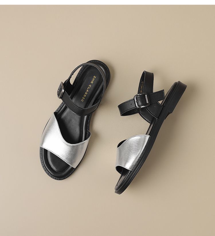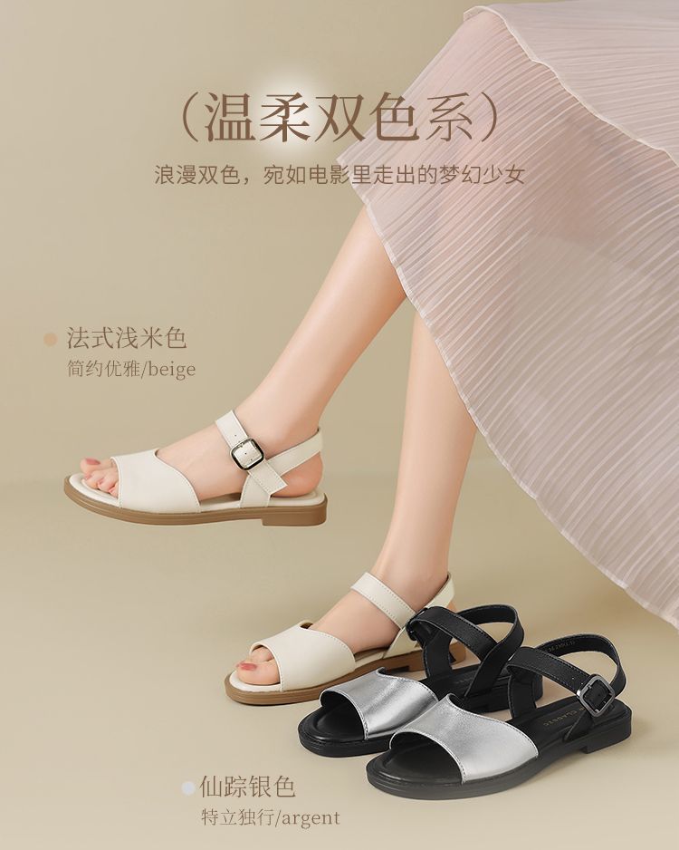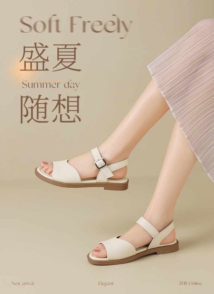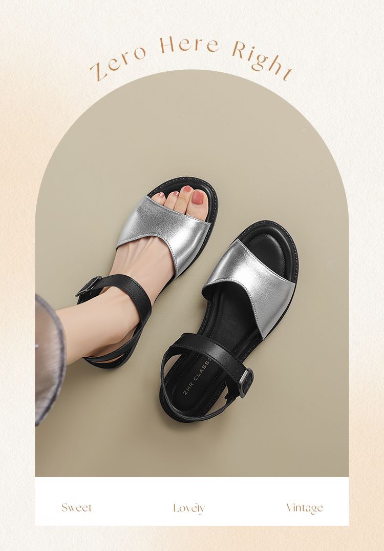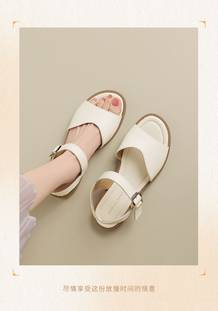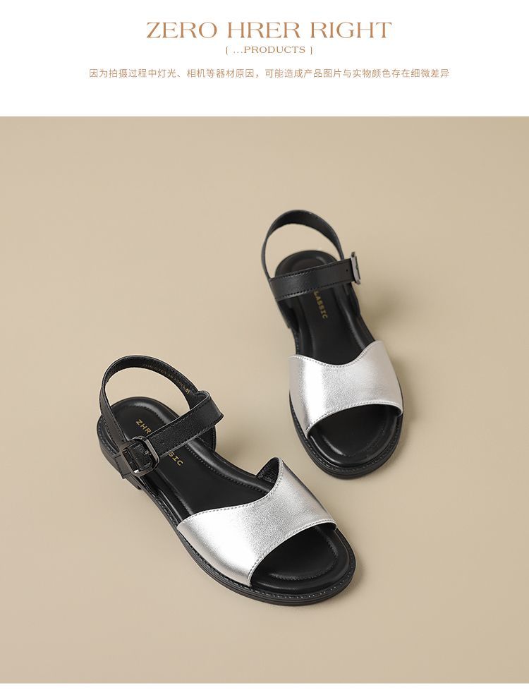 ZHR则则时装凉鞋女2025夏季新款百搭软底一脚蹬通勤一字带凉鞋