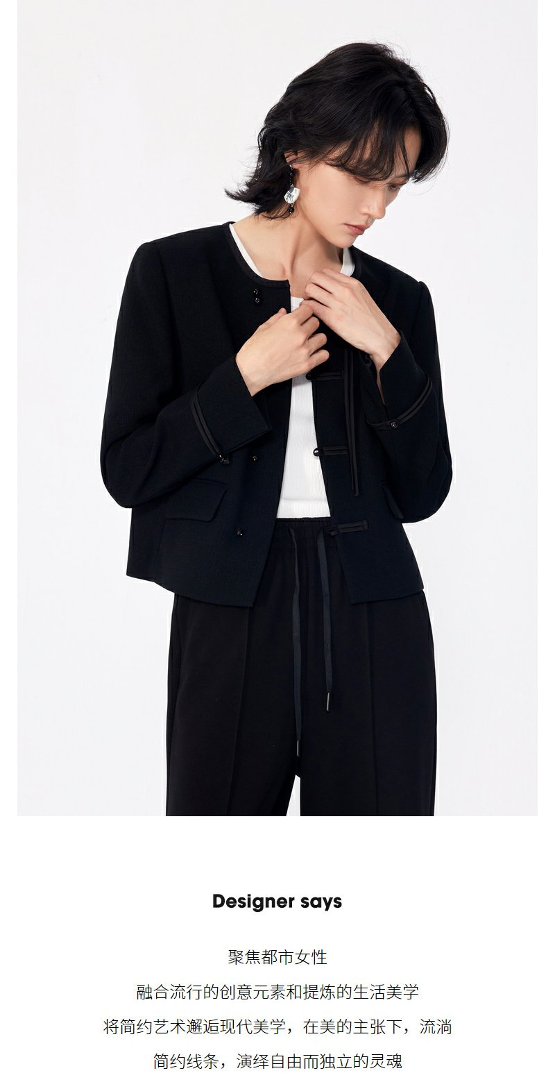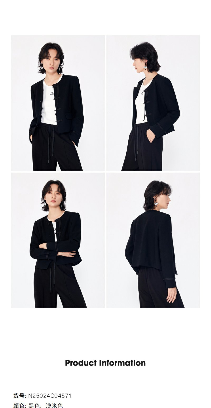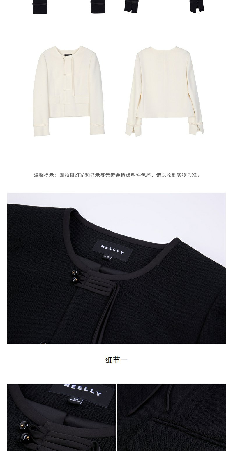NEELLY纳俪商场同款春季新款新中式设计感圆领短外套女正肩显瘦N25024C04571