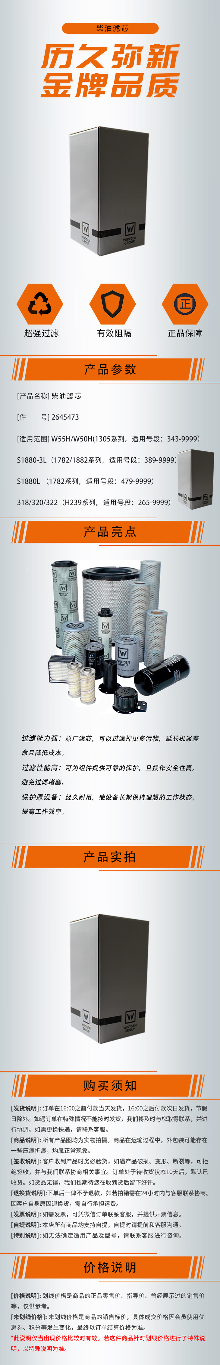 【柴油滤芯2645473】 适用于W55H(1305)/W50H(1305)/W55H(1605)/1880-3L(1782/1882)/S1880L (1782)/318/320/322(H239)