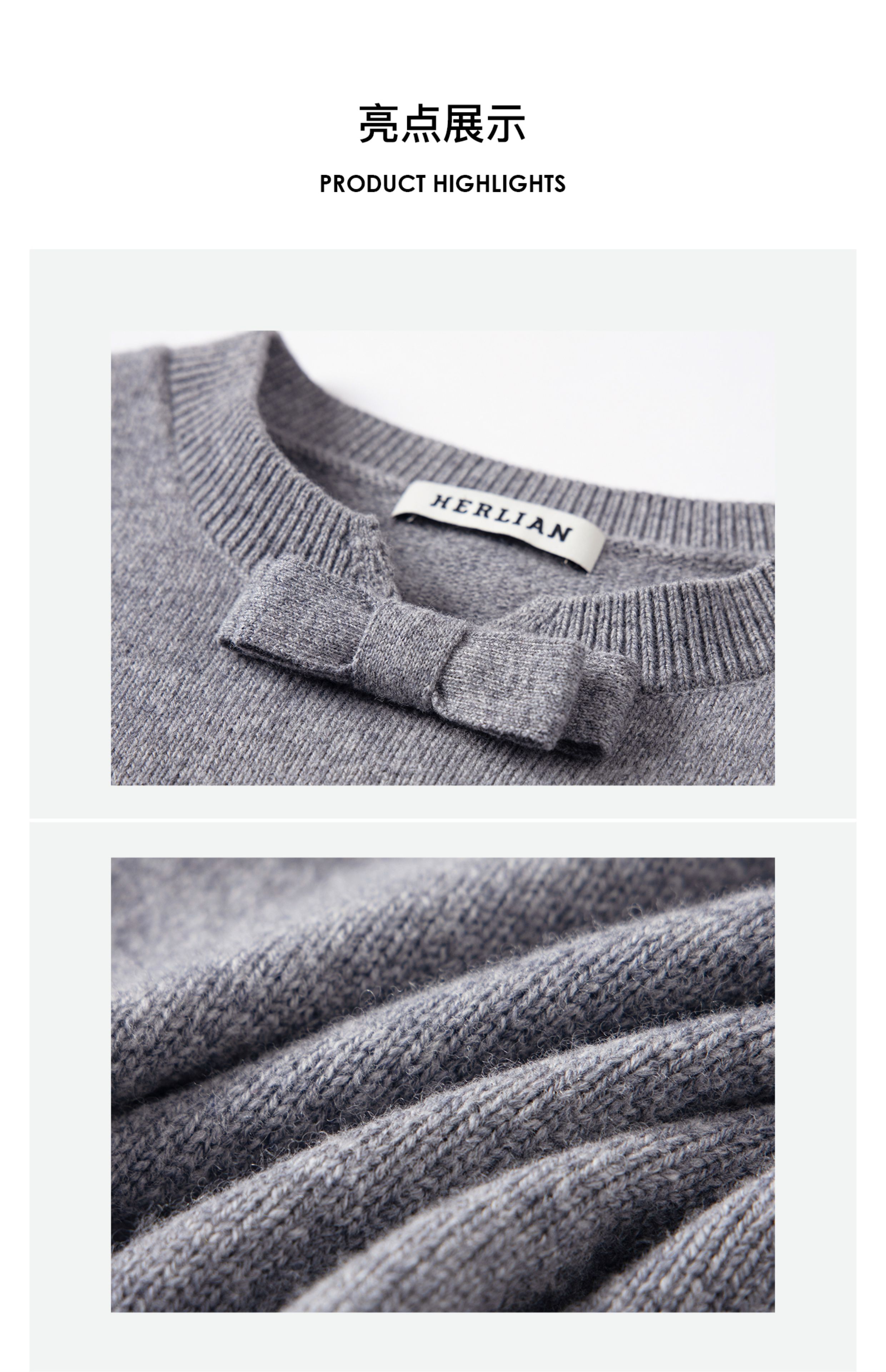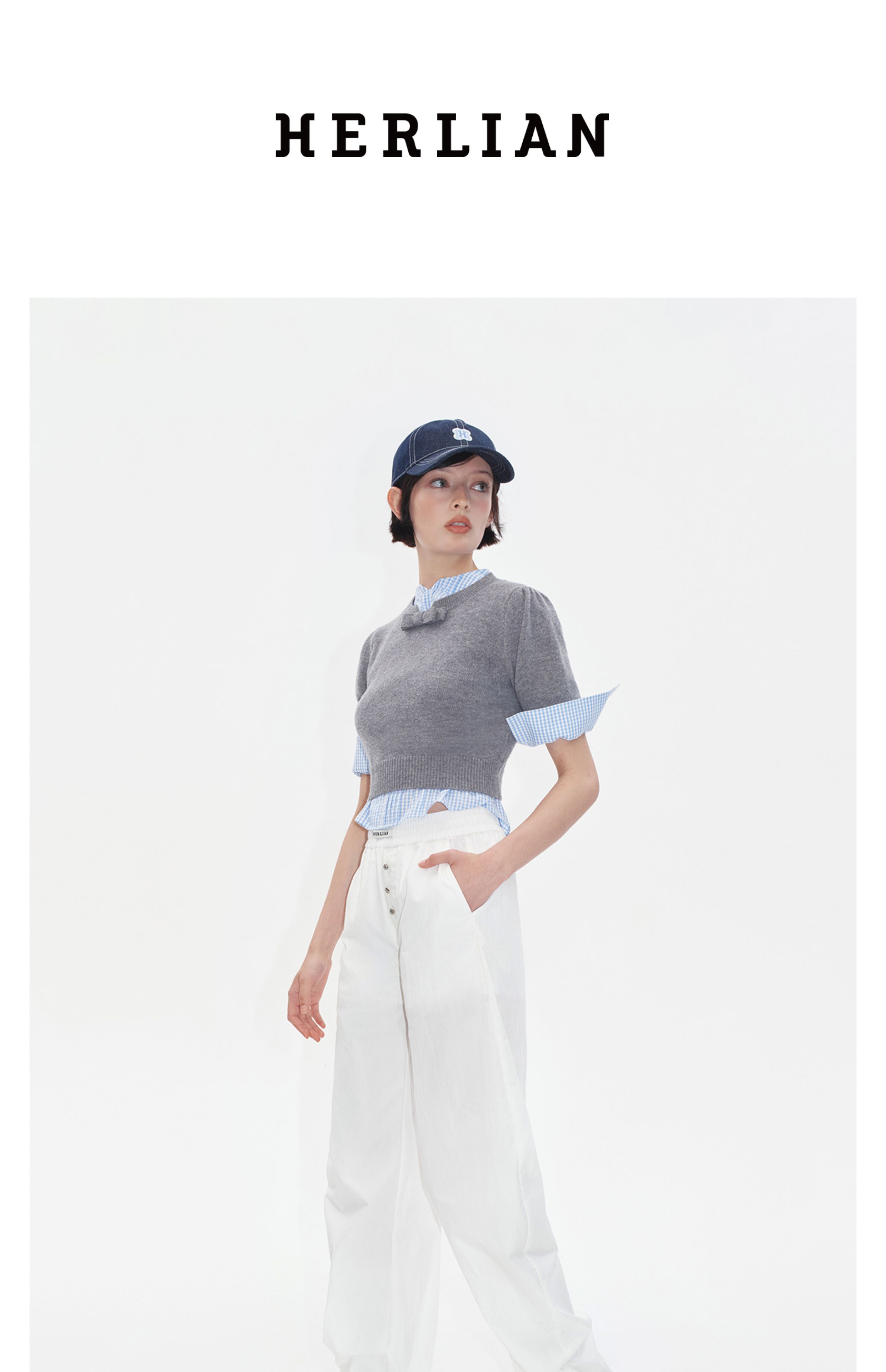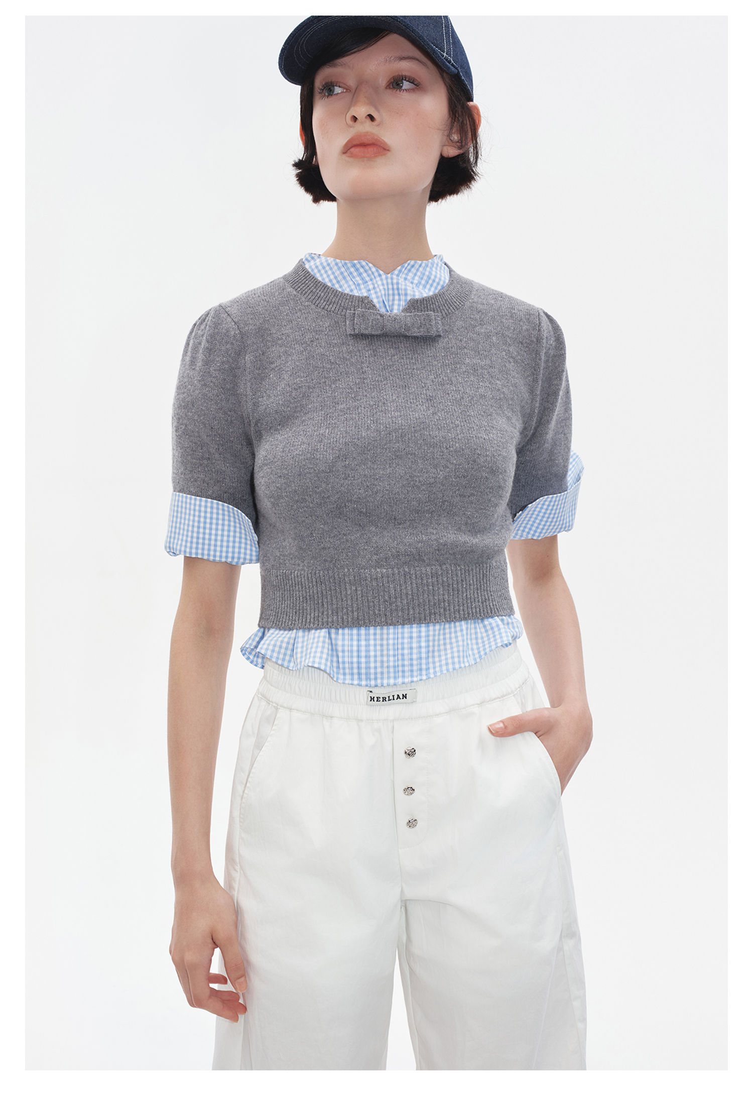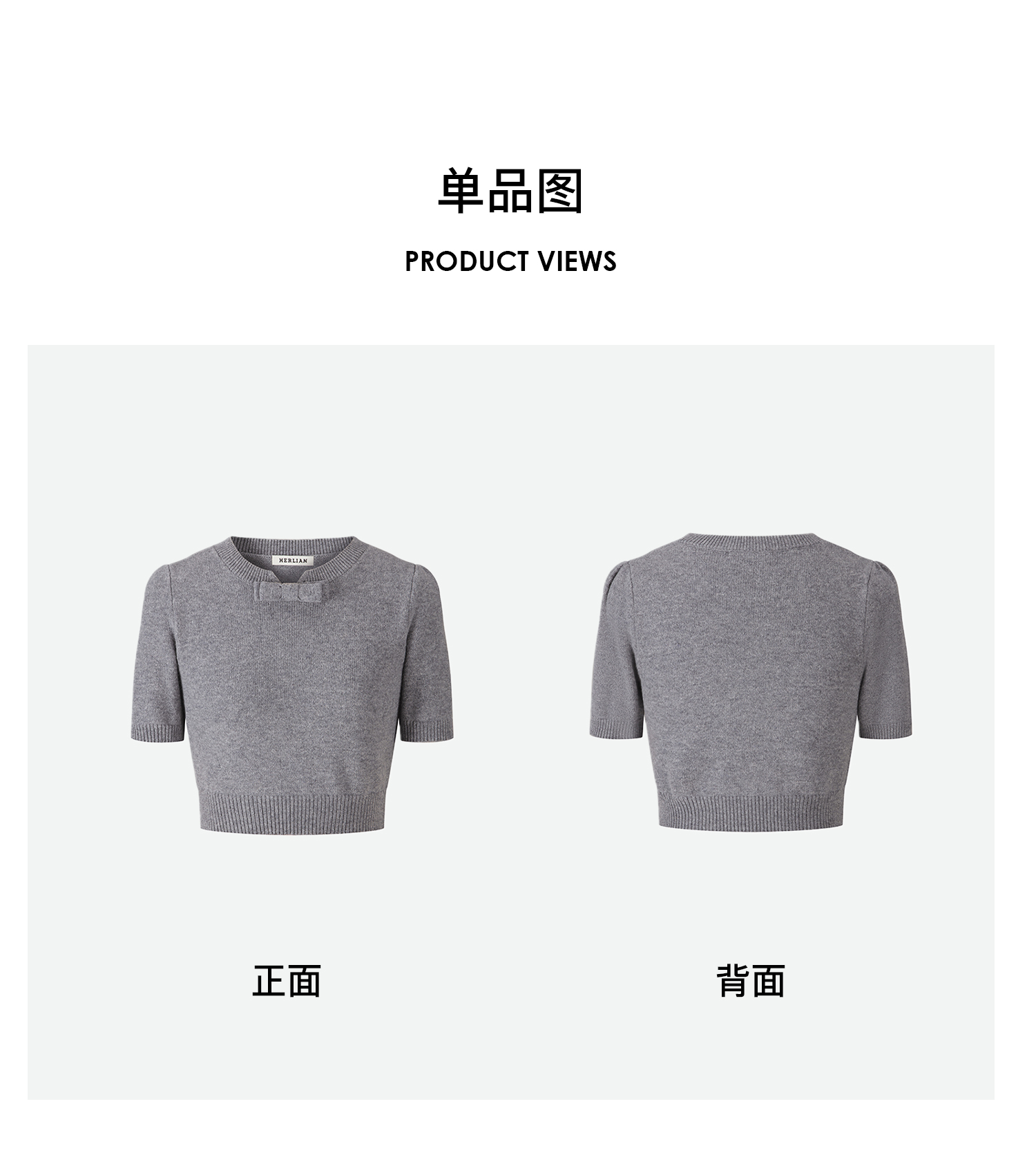 Herlian2025年秋季新品女士蝴蝶结装置短袖针织衫