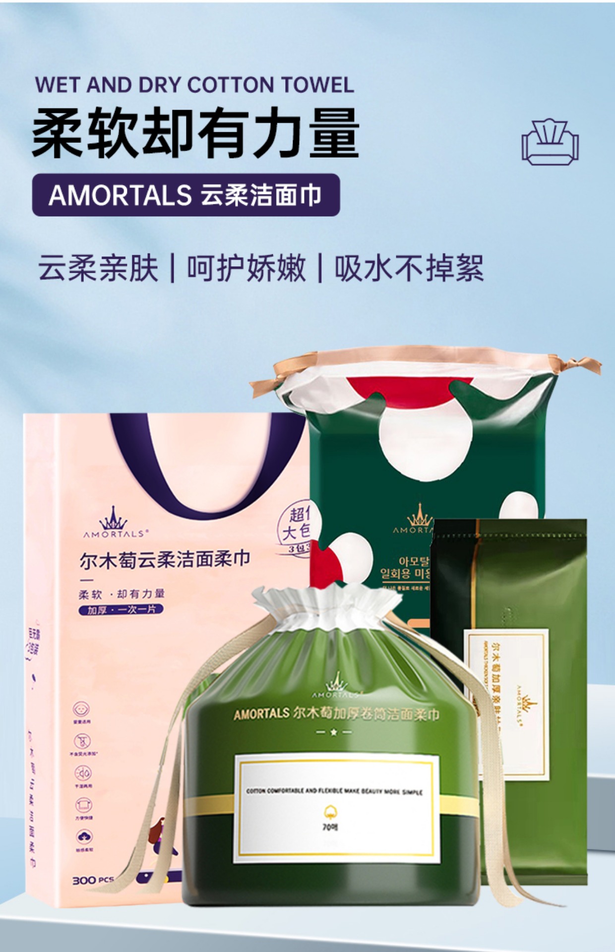 尔木萄洗脸巾1卷70片【一箱8卷】