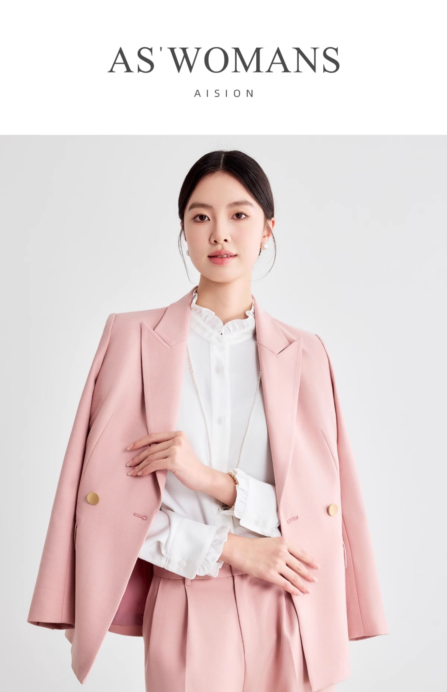 IWY/粉色职业套装女士高级感长袖西装工作服职场通勤女神范西服套裤WCP093