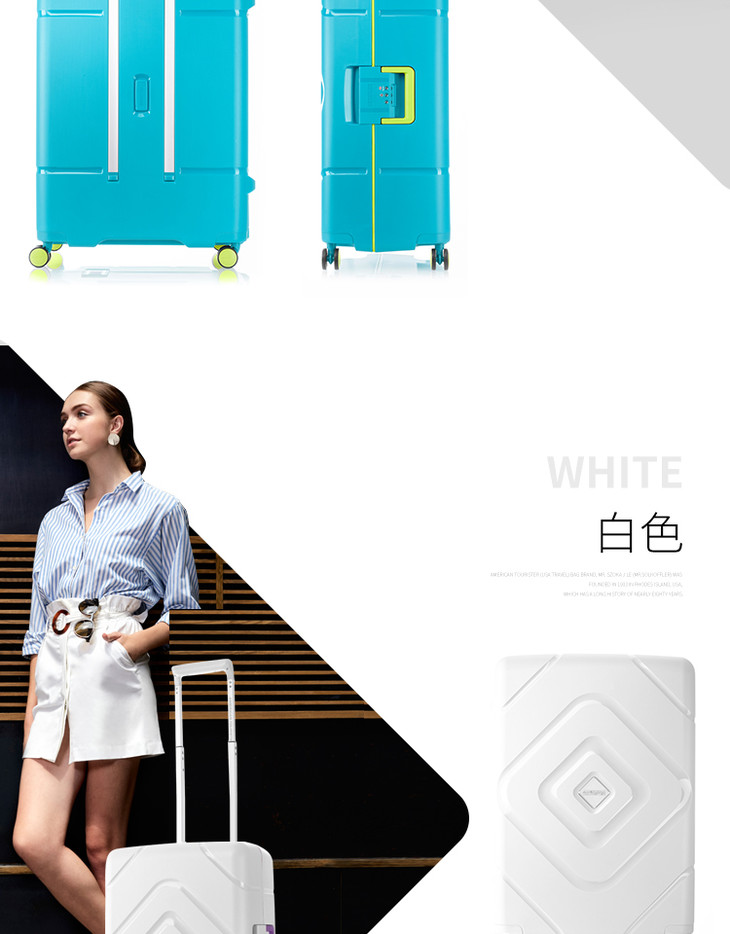【美旅】框架结构 坚固耐磨耐摔 时尚撞色设计 TSA密码锁 顺滑万向轮 拉杆箱 GP8