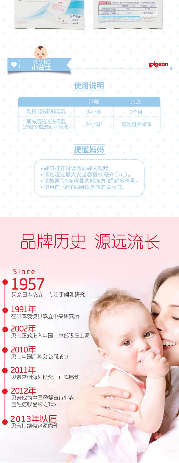 【一般贸易】日本贝亲Pigeon母乳储存袋(80mL)