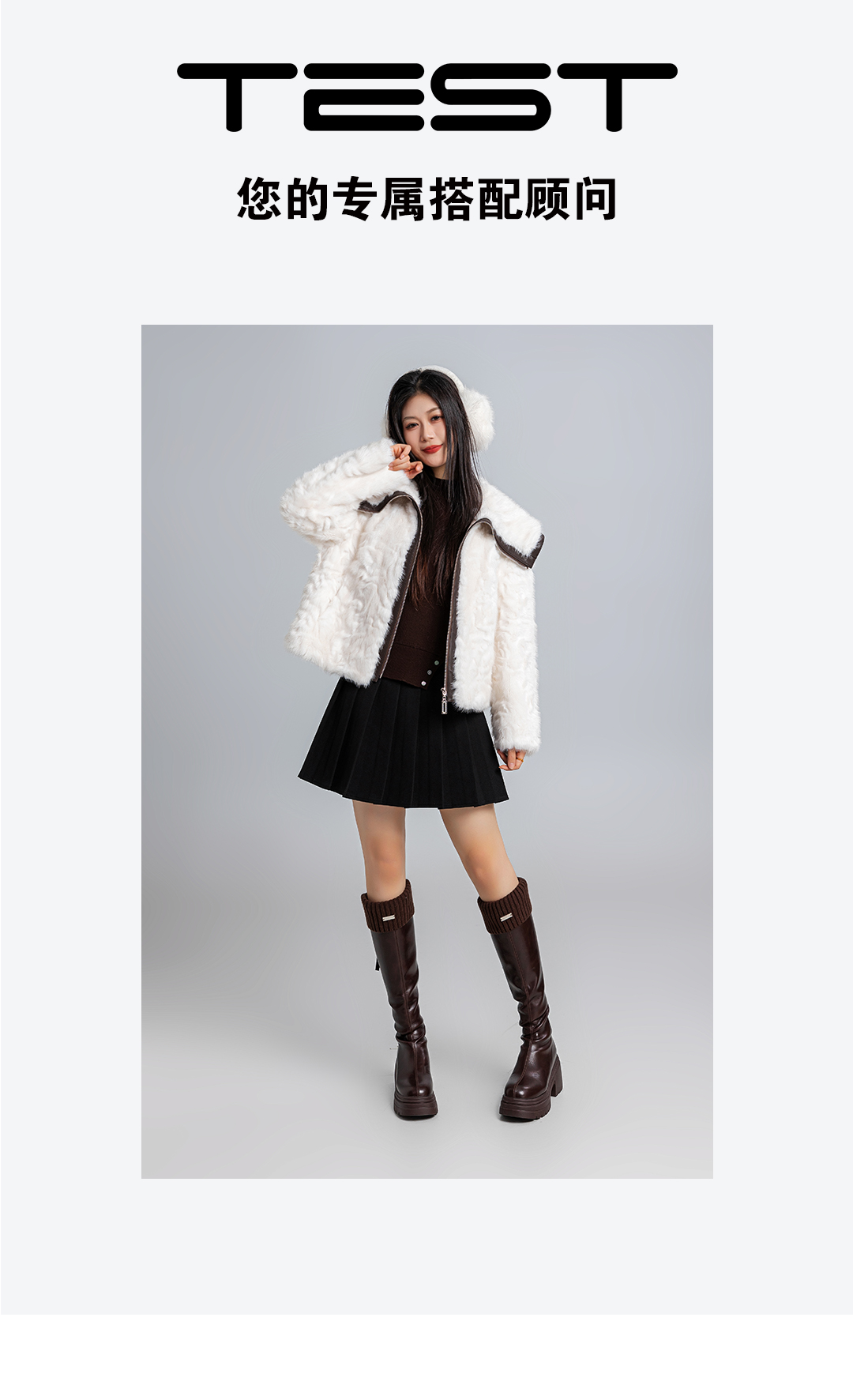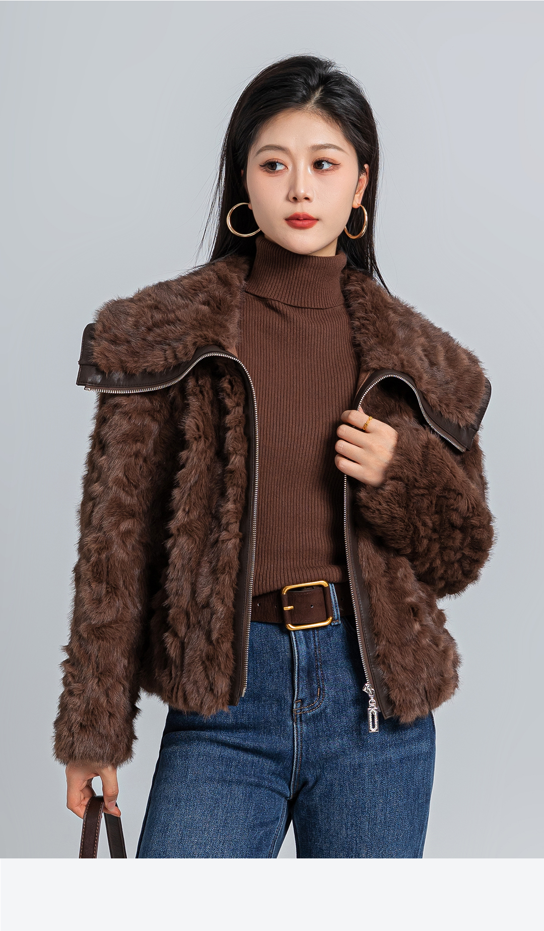 春上新高端大翻领拼接毛绒气质上衣绒外套2261017 商品图2