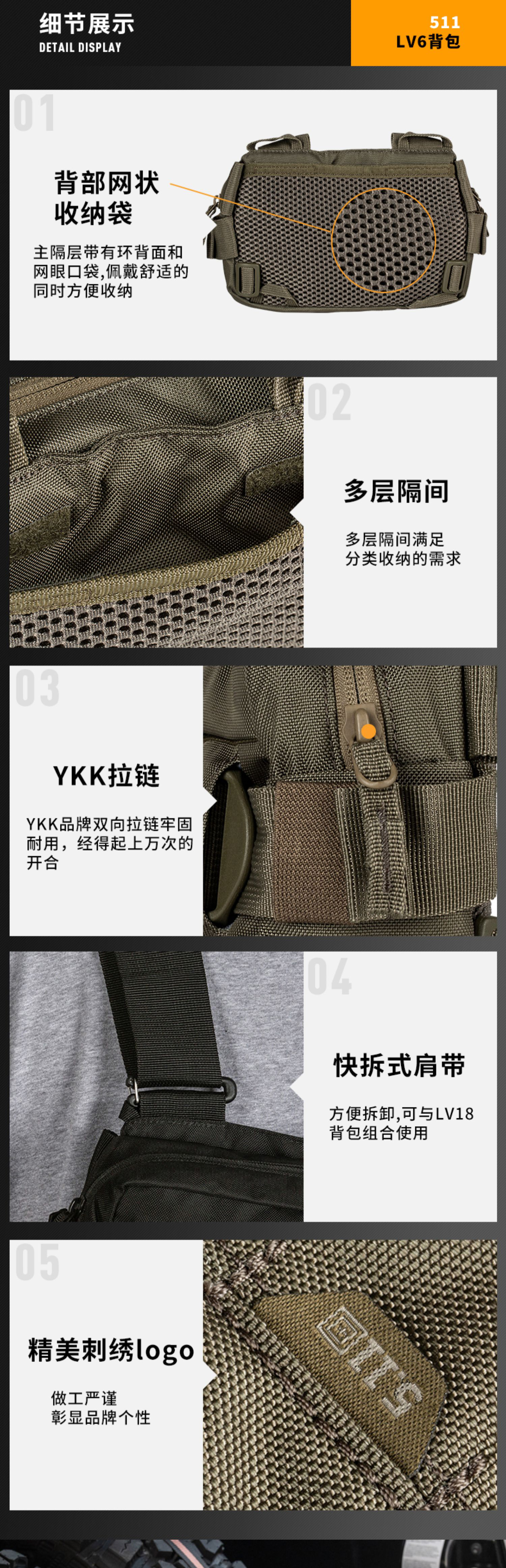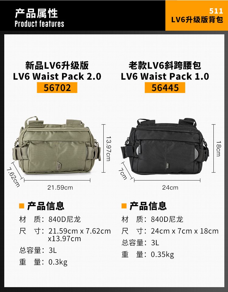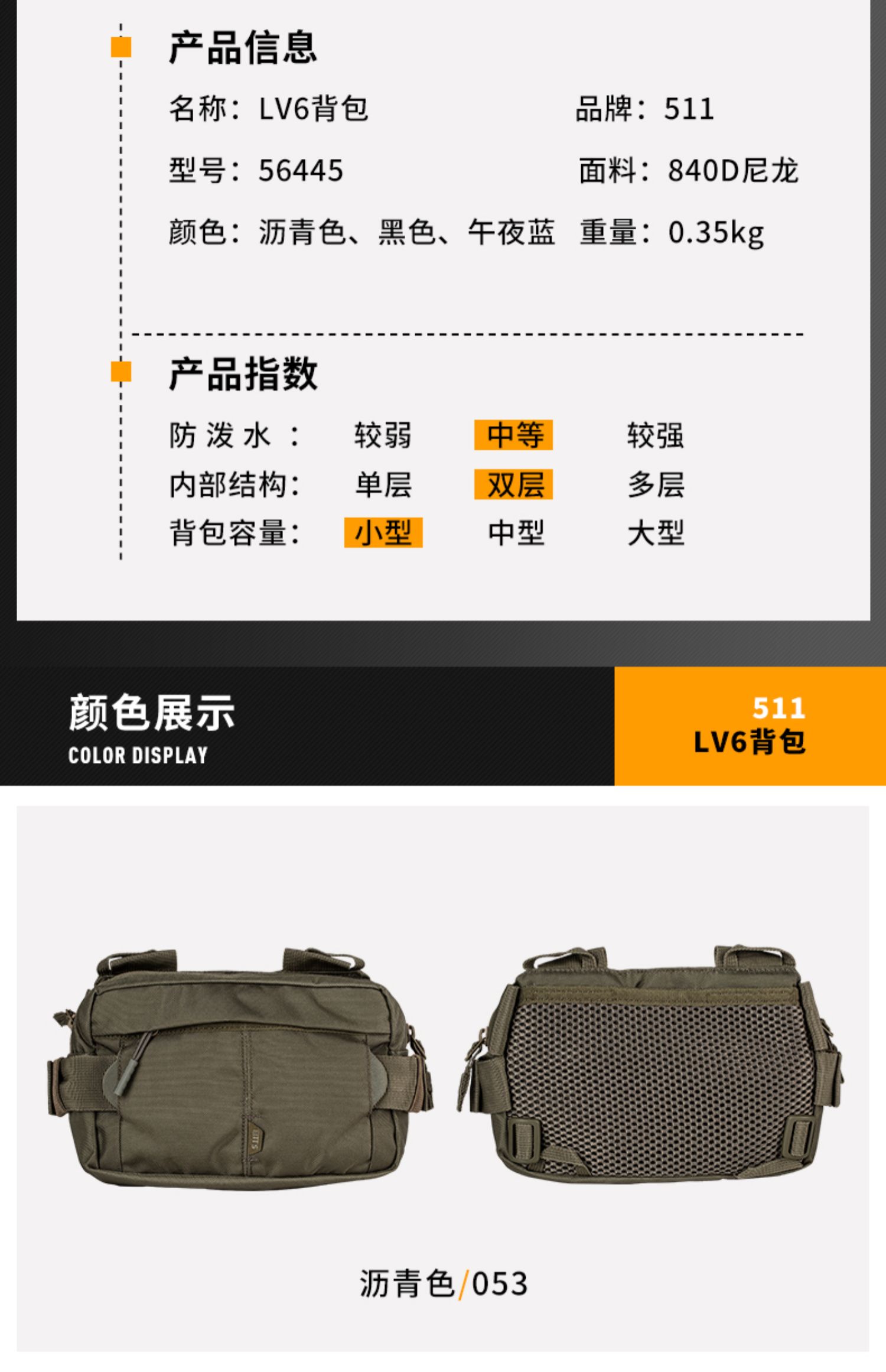 5.11战术小包LV6战术多功能便携腰包防泼水斜挎胸包56702(3L)