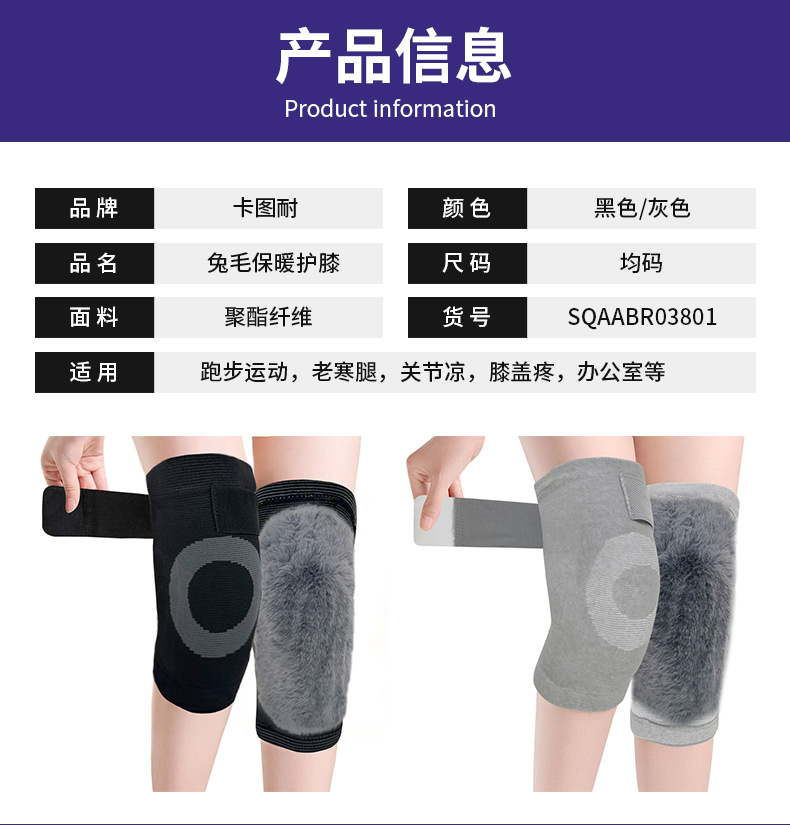 加厚仿兔毛绒保暖护膝 超能蓄热保暖膝盖 针纺工艺亲肤透气韧带 保暖护膝 均码【100~160斤】