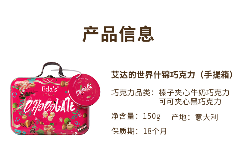 意大利艾达的世界什锦巧克力制品150g/040769 精致手提箱造型优质可可