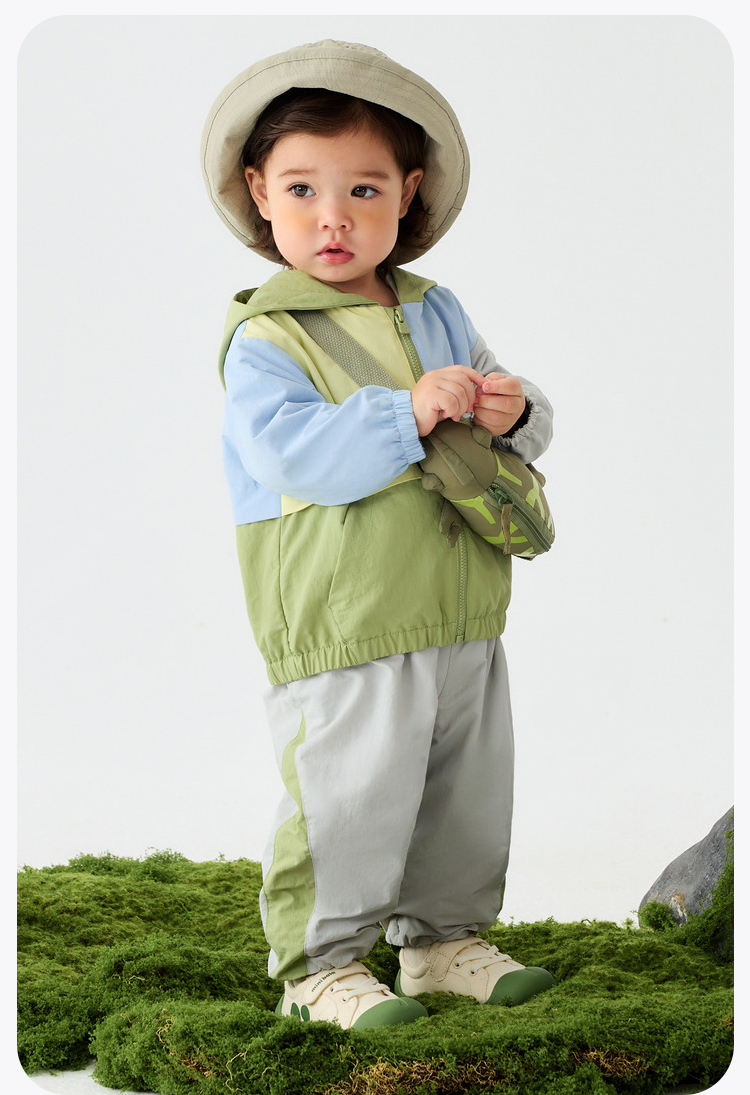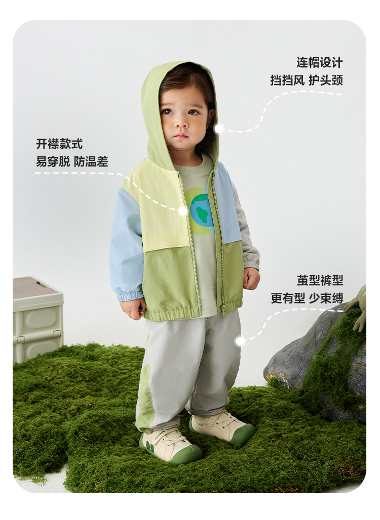 迷你巴拉男女童户外长袖套装舒适连帽上衣长裤两件套春新品