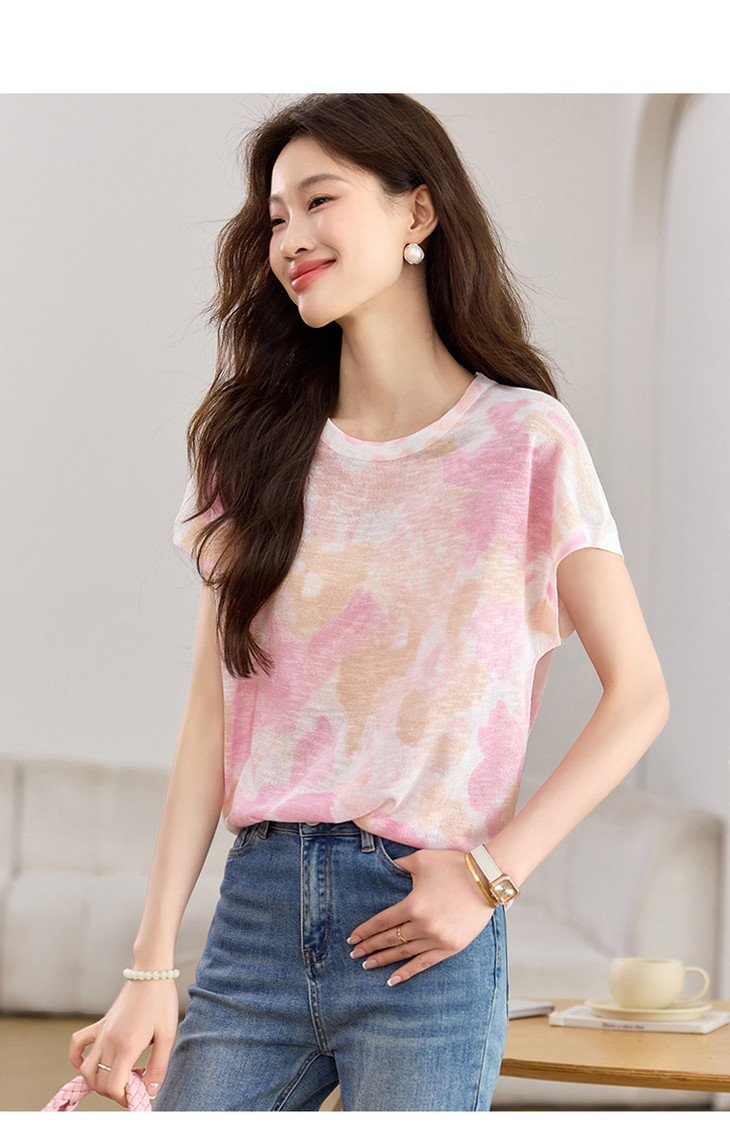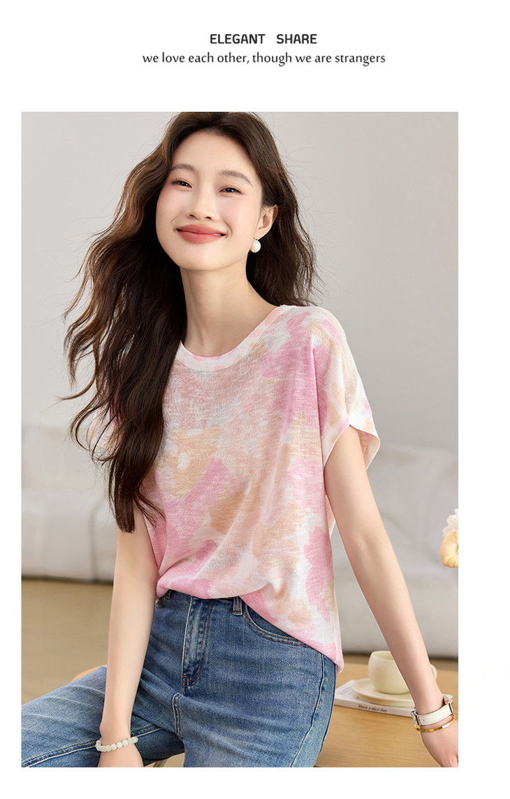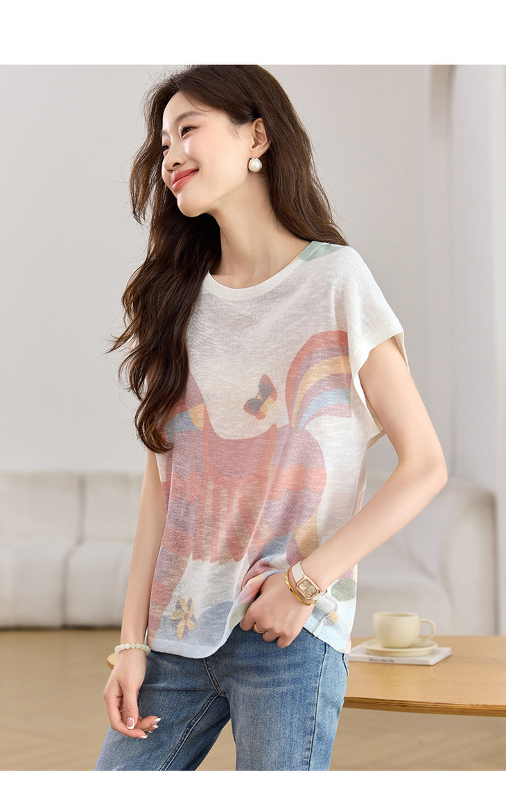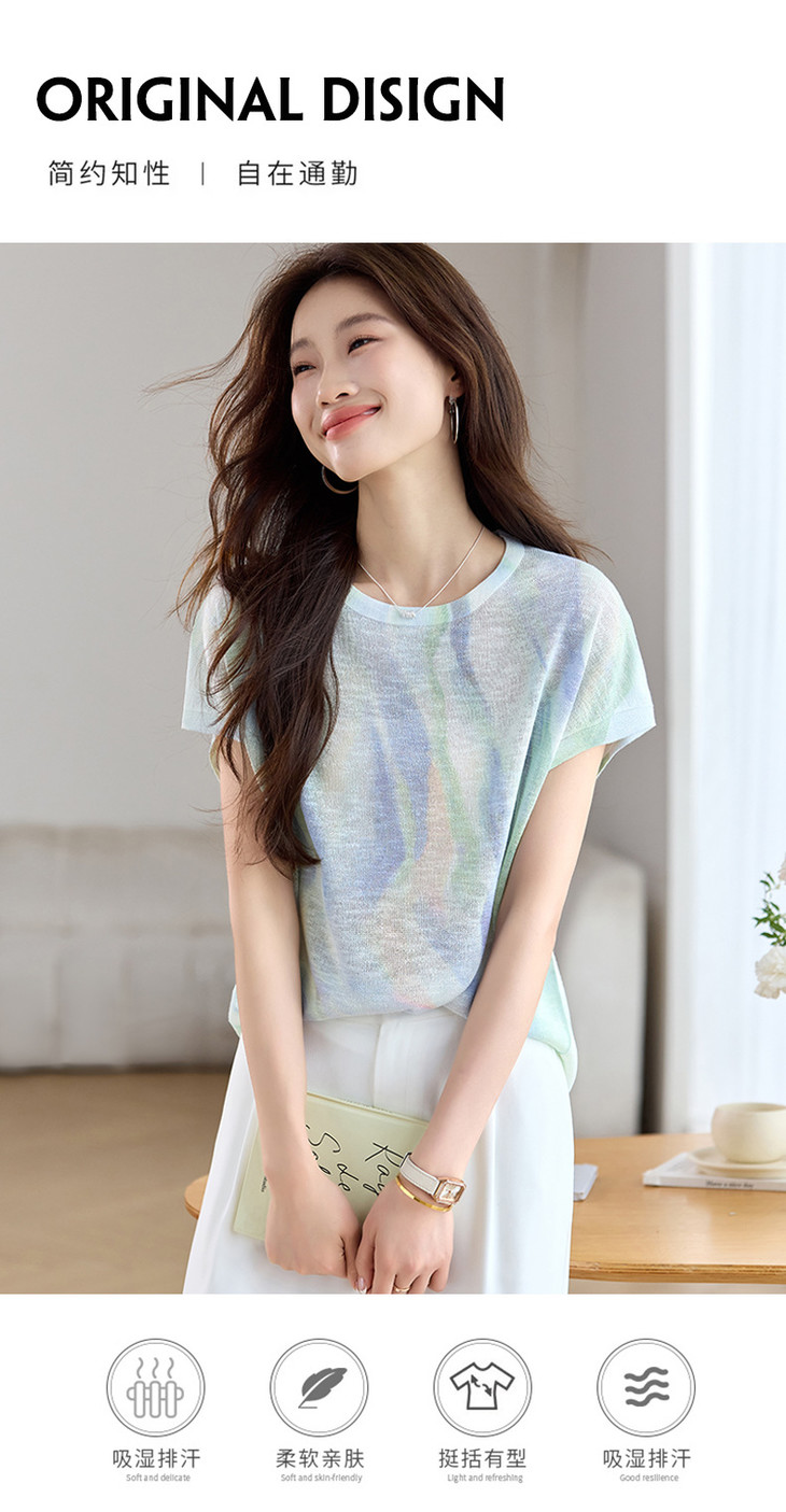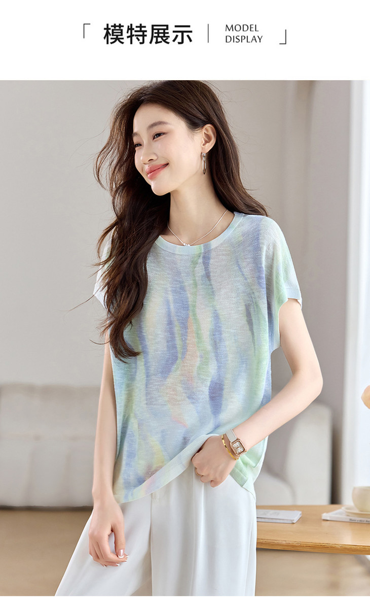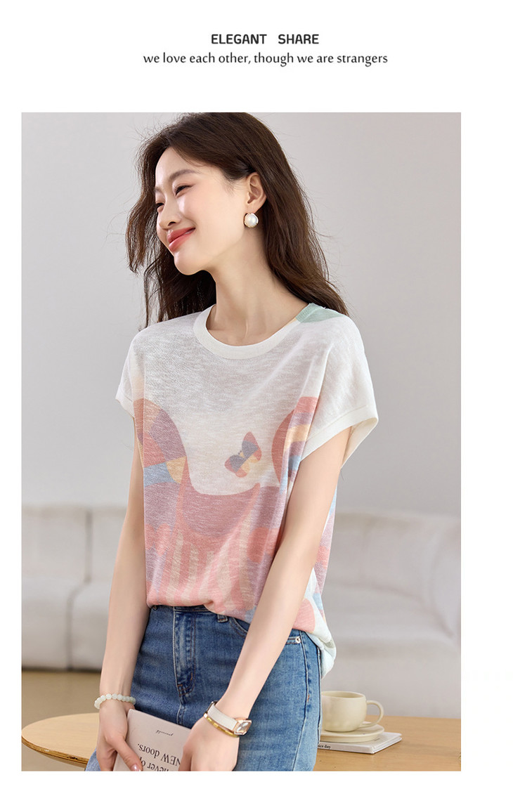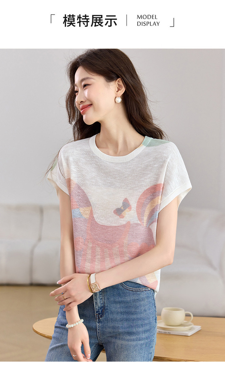 女遮肚子显瘦圆领休闲印花冰丝针织衫CC2767