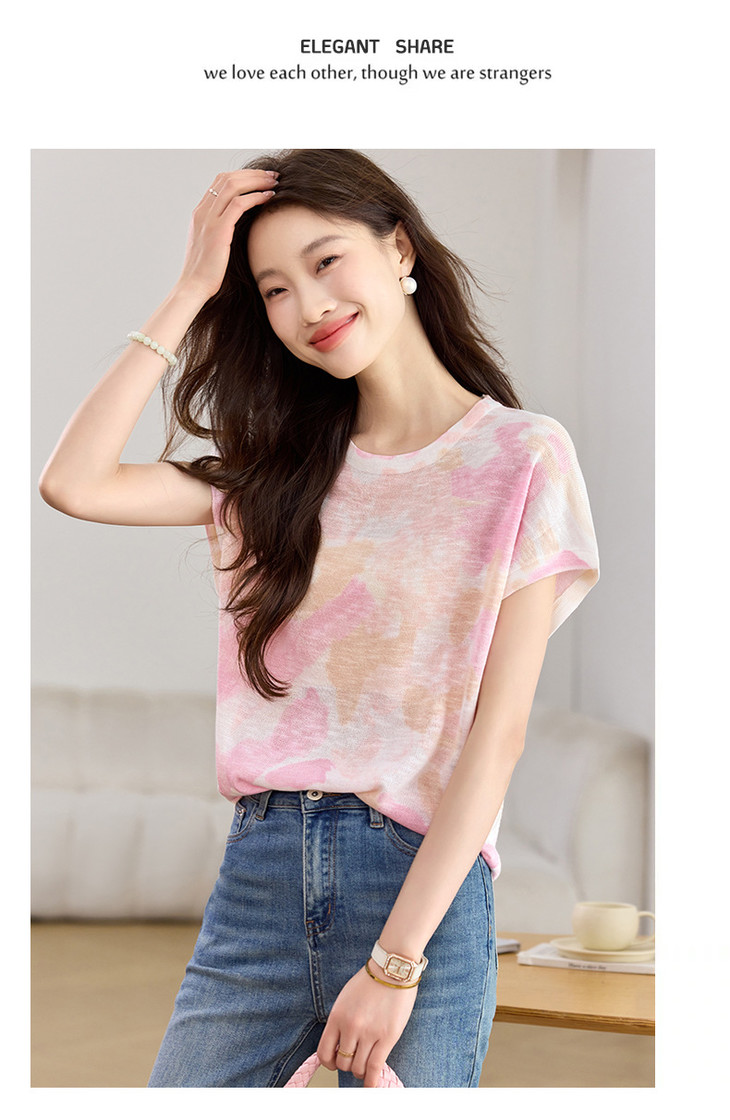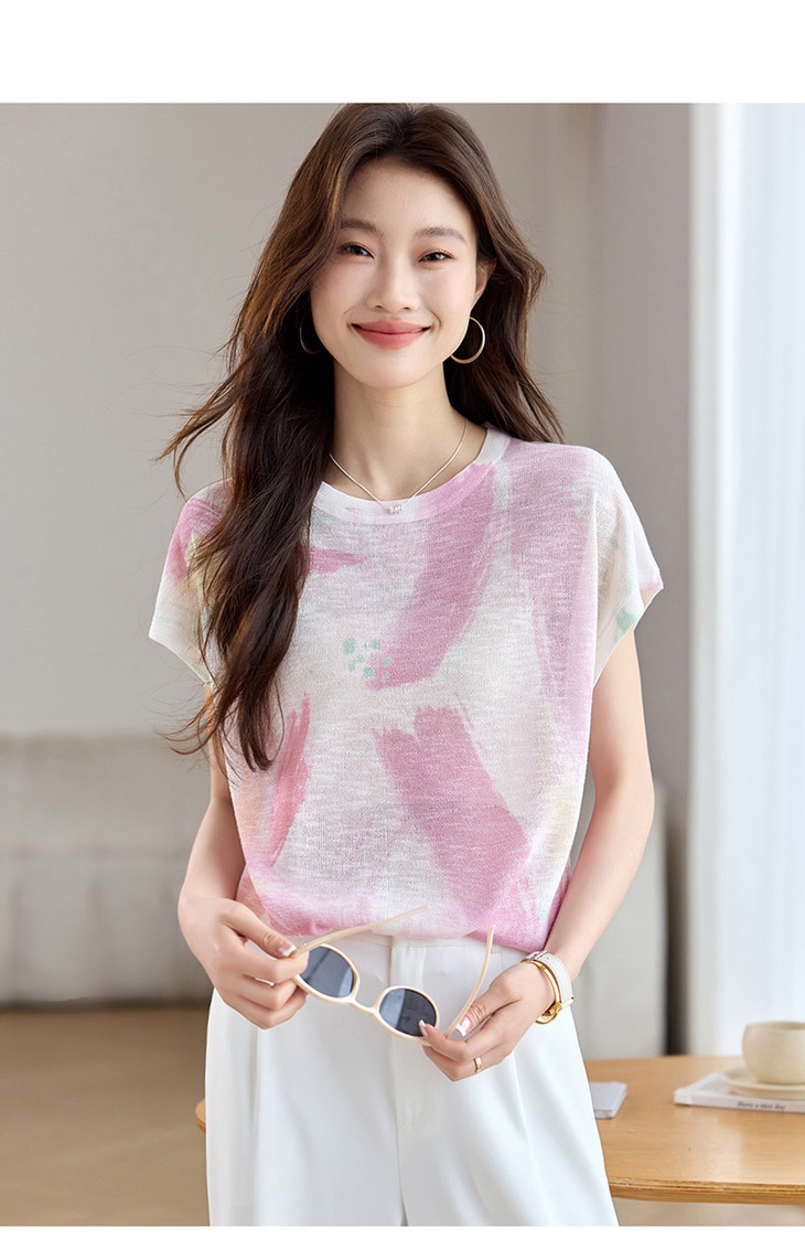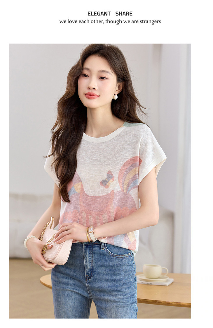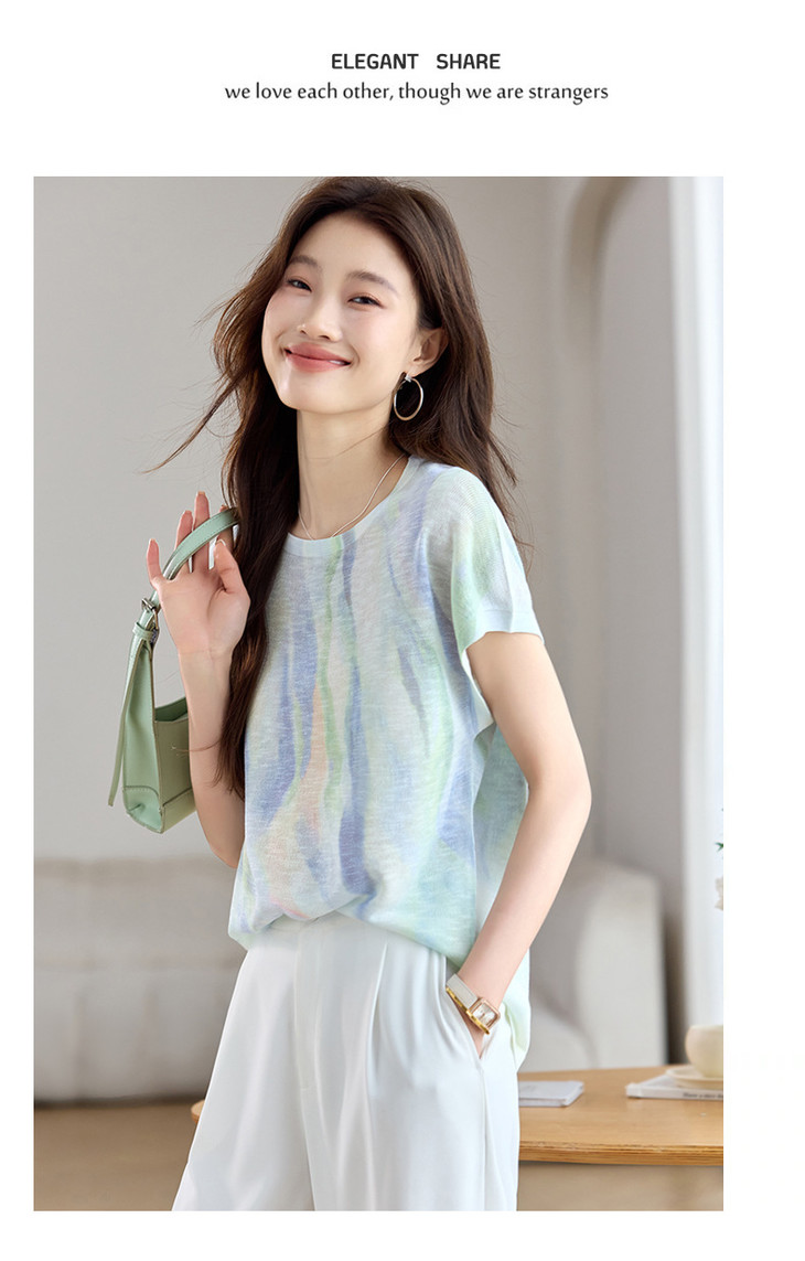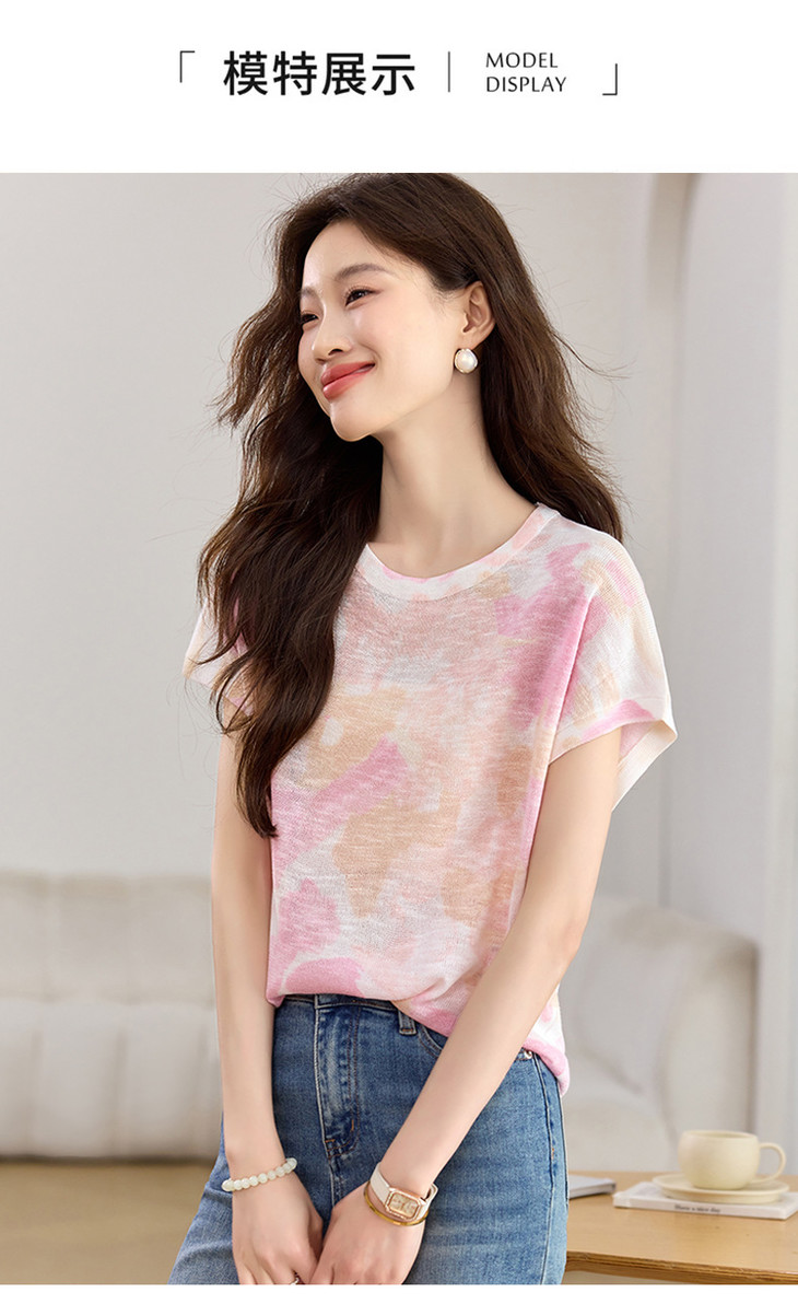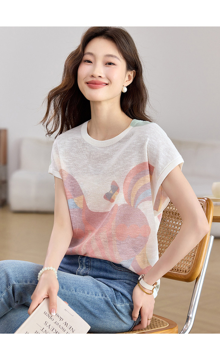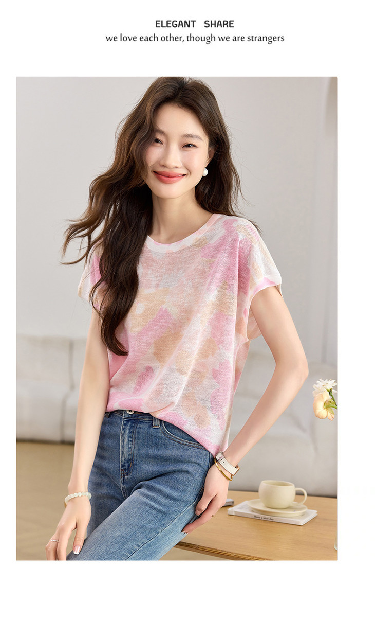 女遮肚子显瘦圆领休闲印花冰丝针织衫CC2767